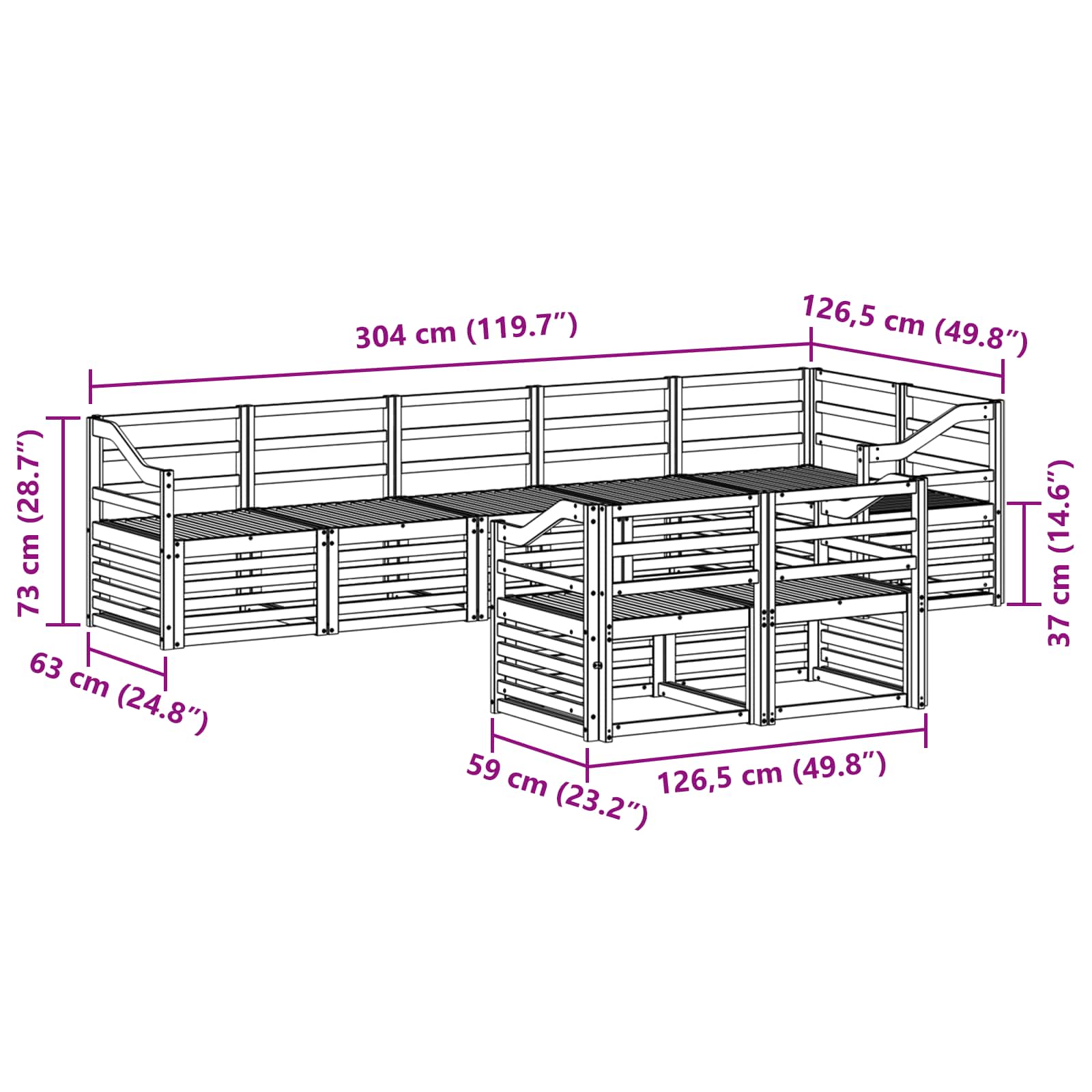 - 7 x Canapea mijlocie: 63 x 59 x 73 cm (LxWxH)