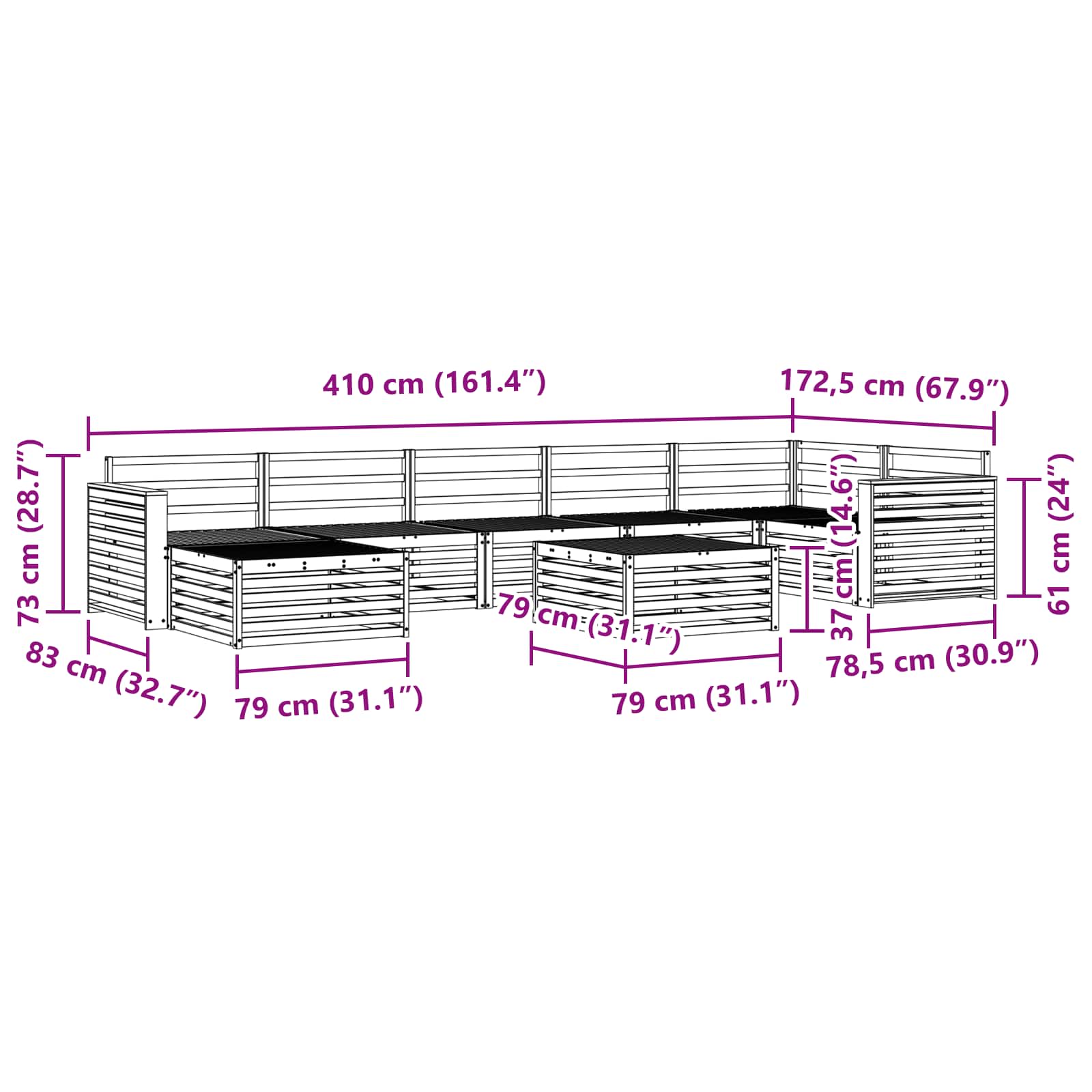 - 5 x Canapea de mijloc: 83 x 79 x 73 cm (LxWxH)