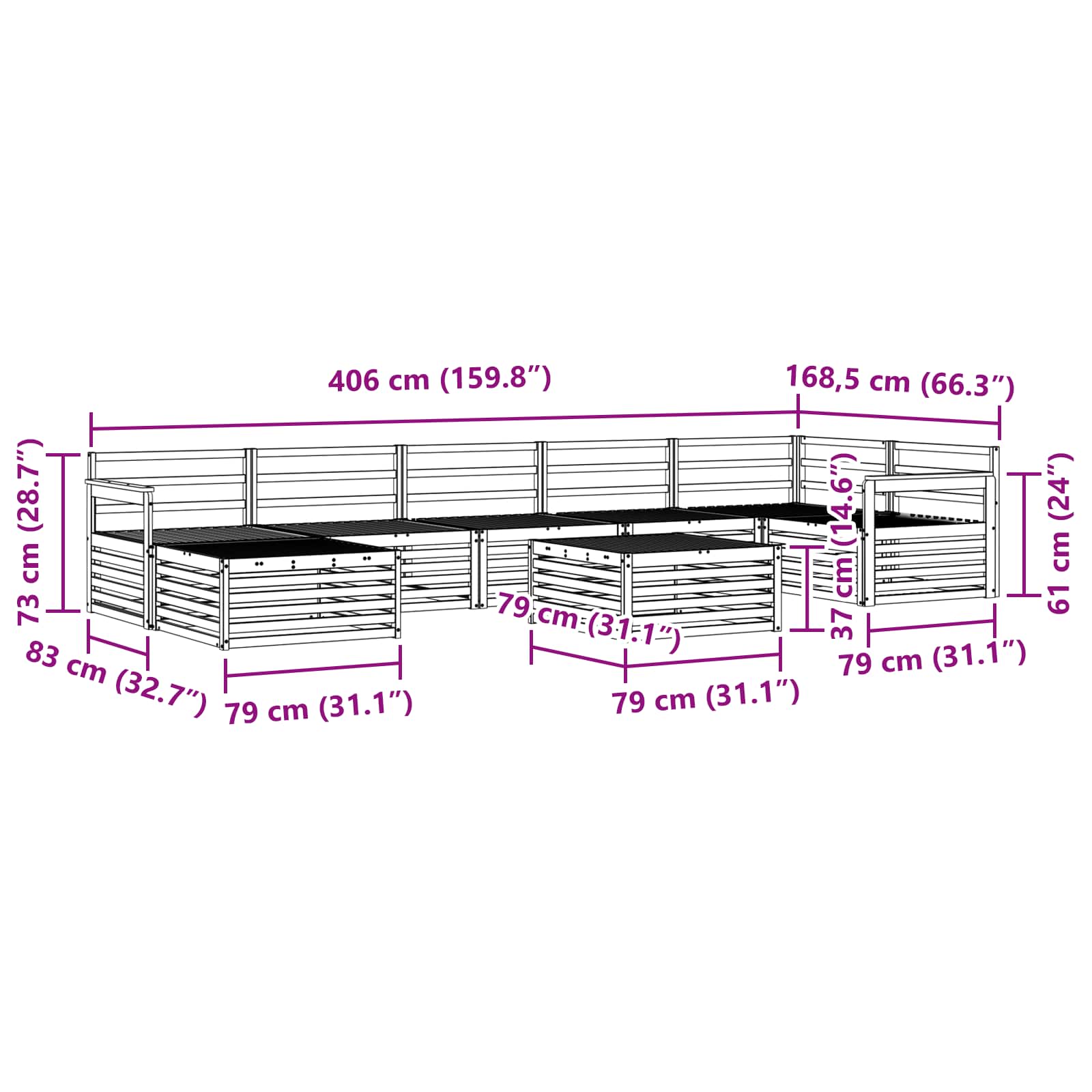 - 5 x Canapea de mijloc: 83 x 79 x 73 cm (LxWxH)