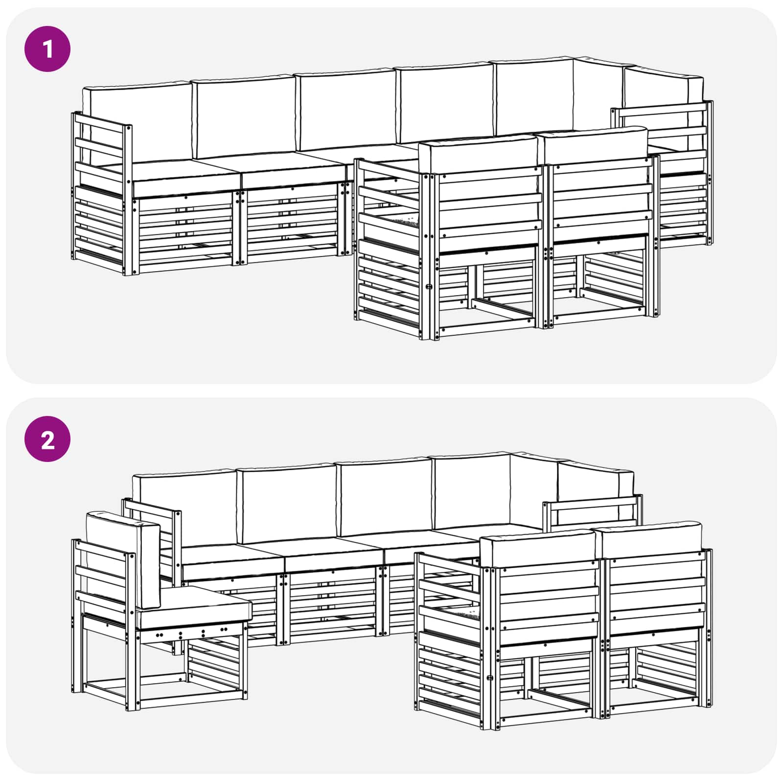 - 8 x perne pentru șezut: 60 x 60 x 8 cm (LxWxH)