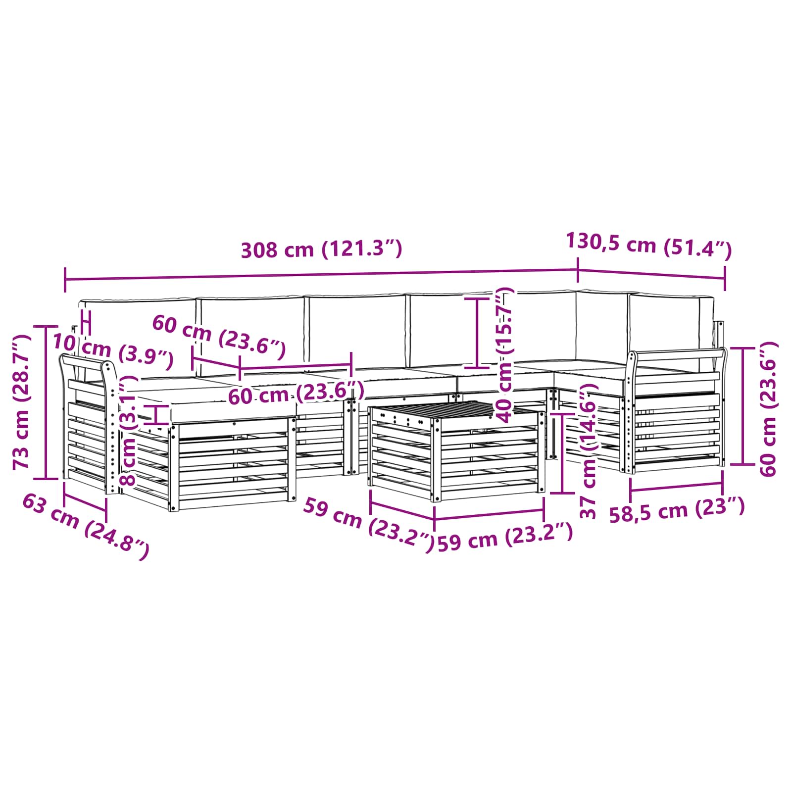 - 7 x Pernă de șezut: 60 x 60 x 8 cm (LxWxH)
