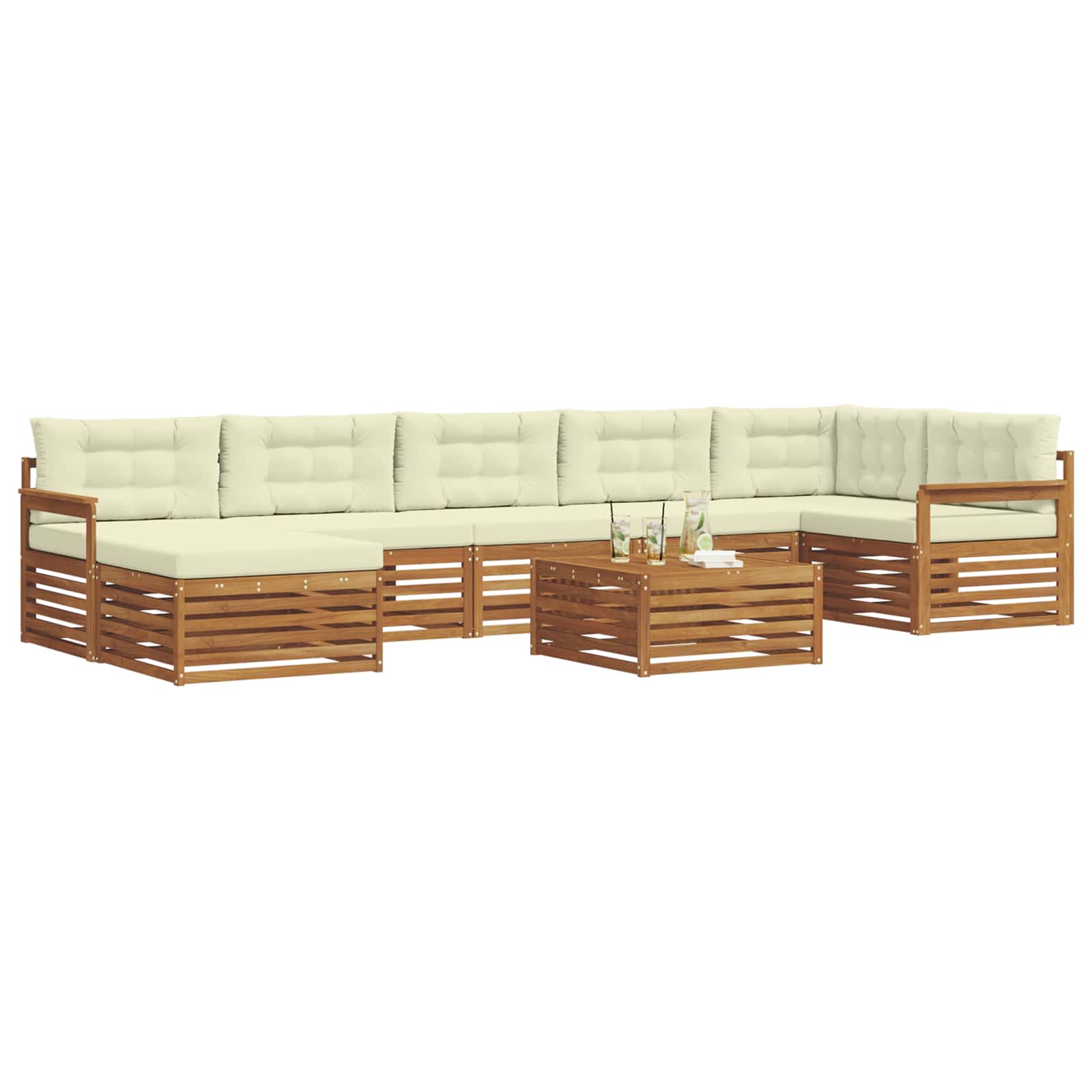 Seturi de canapele 8 pcs Natural și Crem Lemn Solid de Acacia GartenMobel Dekor