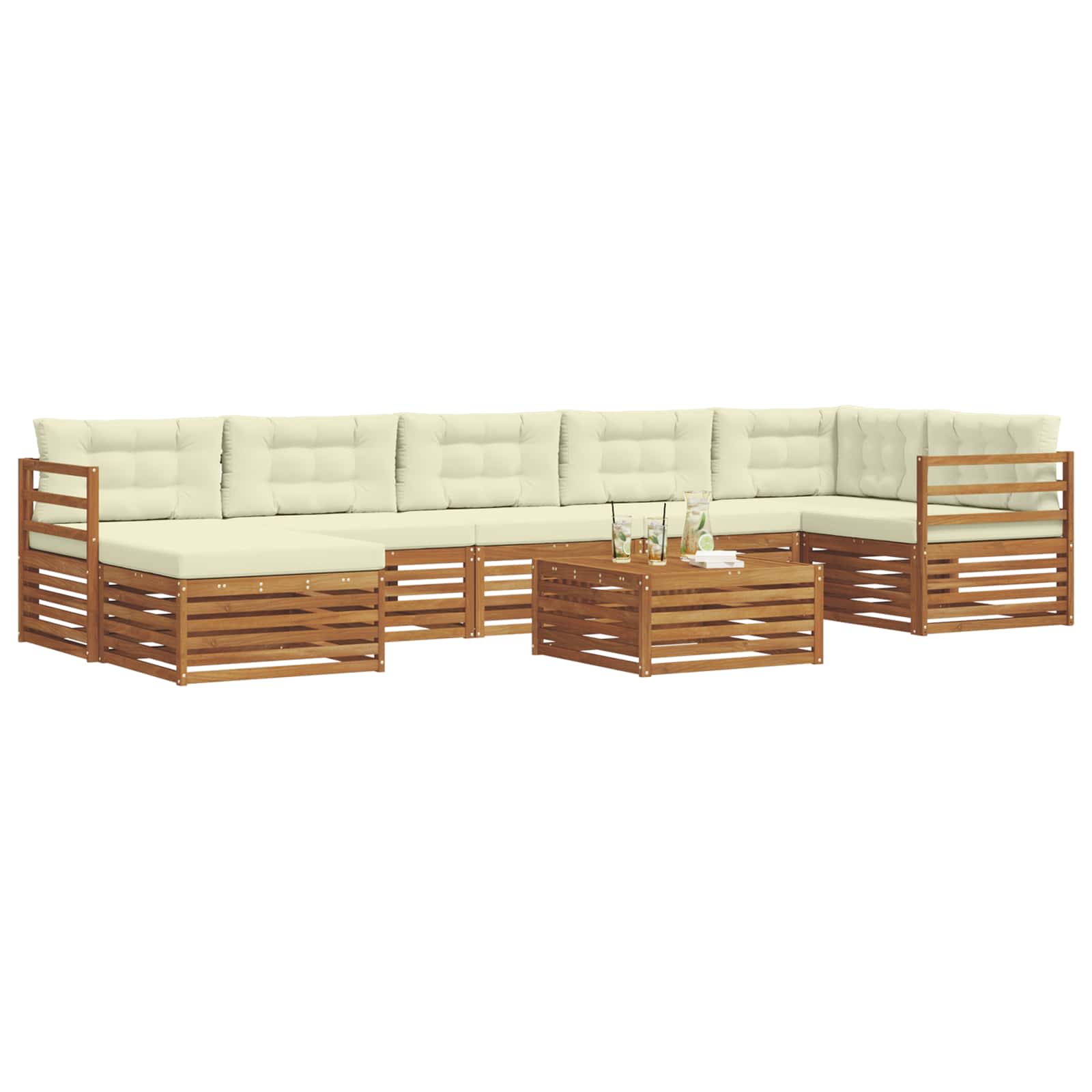 Seturi de canapele 8 pcs Natural și Crem Lemn Solid de Acacia GartenMobel Dekor