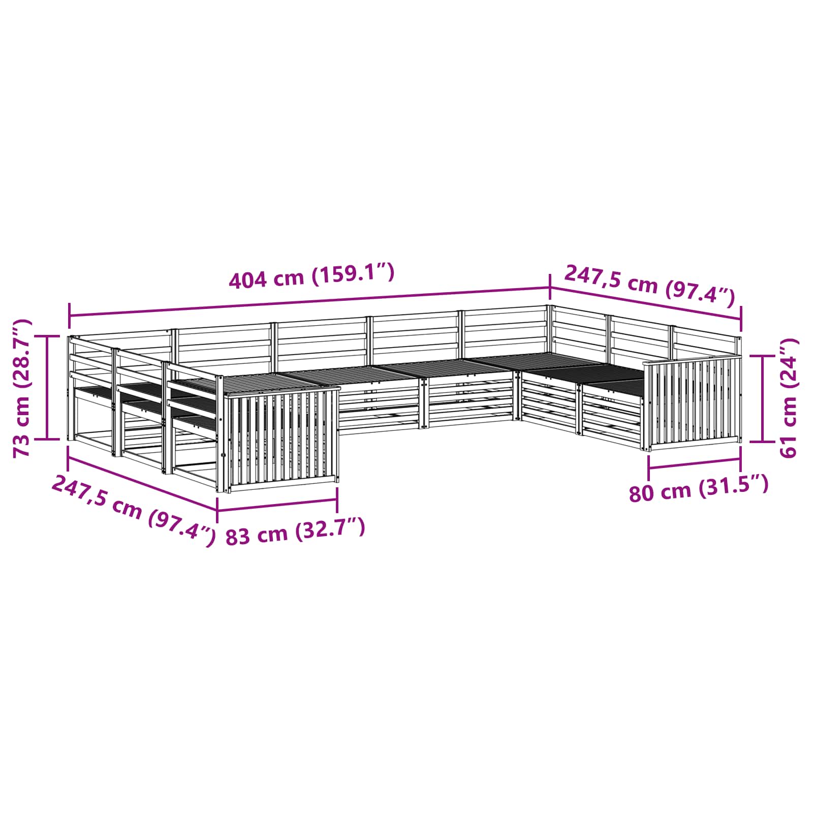 - 7 x Canapea mijlocie: 83 x 79 x 73 cm (LxWxH)