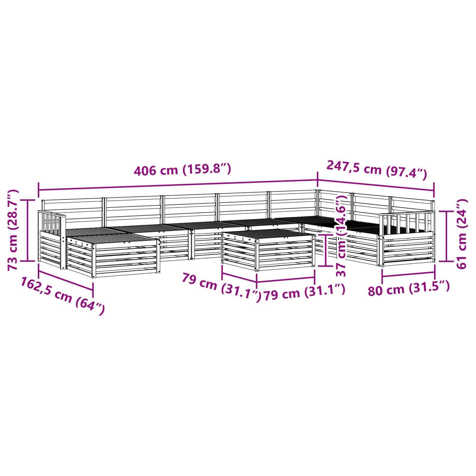 - Dimensiuni generale: 79 x 79 x 37 cm (L x l x î)