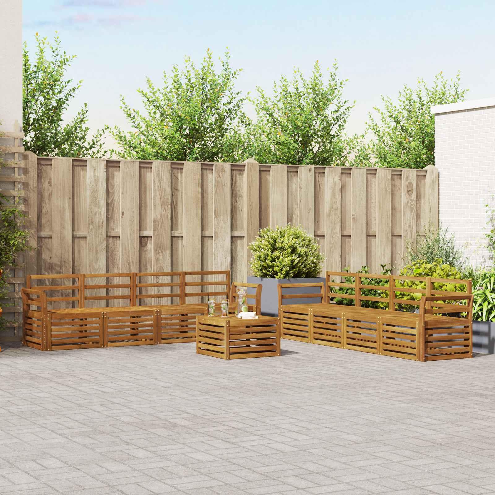 Setul ăsta de mobilier de exterior aduce stil și utilitate, fiind piesa centrală perfectă pentru orice grădină sau terasă. Designul modern, cu linii clare și detalii simple, adaugă eleganță și face relaxarea în aer liber și întâlnirile sociale să fie foarte plăcute. Fiind făcut din lemn masiv de acacia, setul e durable și arată bine pe termen lung, ideal pentru cei care doresc practicitate și un design elegant în mobilierul de exterior.