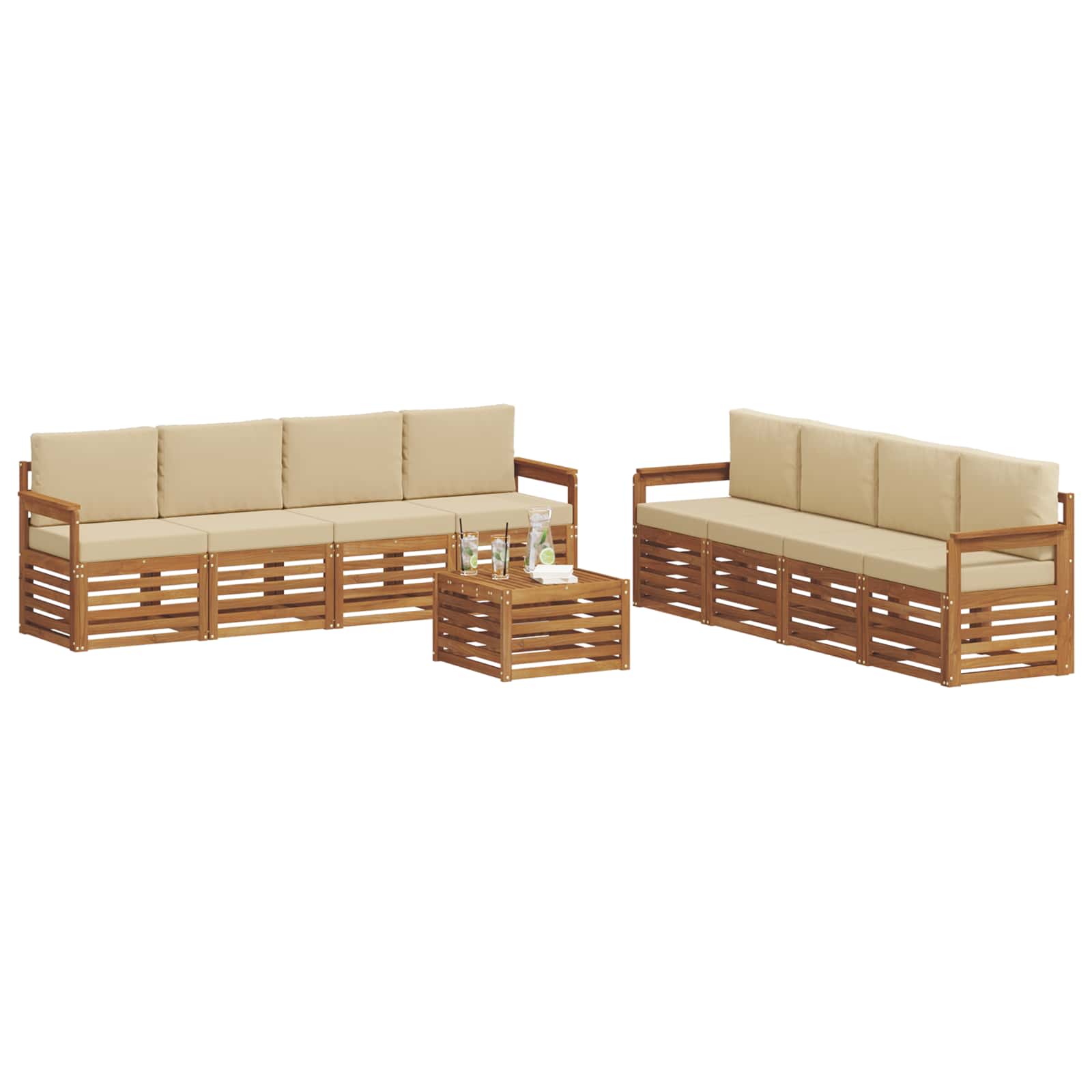 Seturi de canapele 9 pcs Natural și Bej Lemn Solid de Acacia GartenMobel Dekor