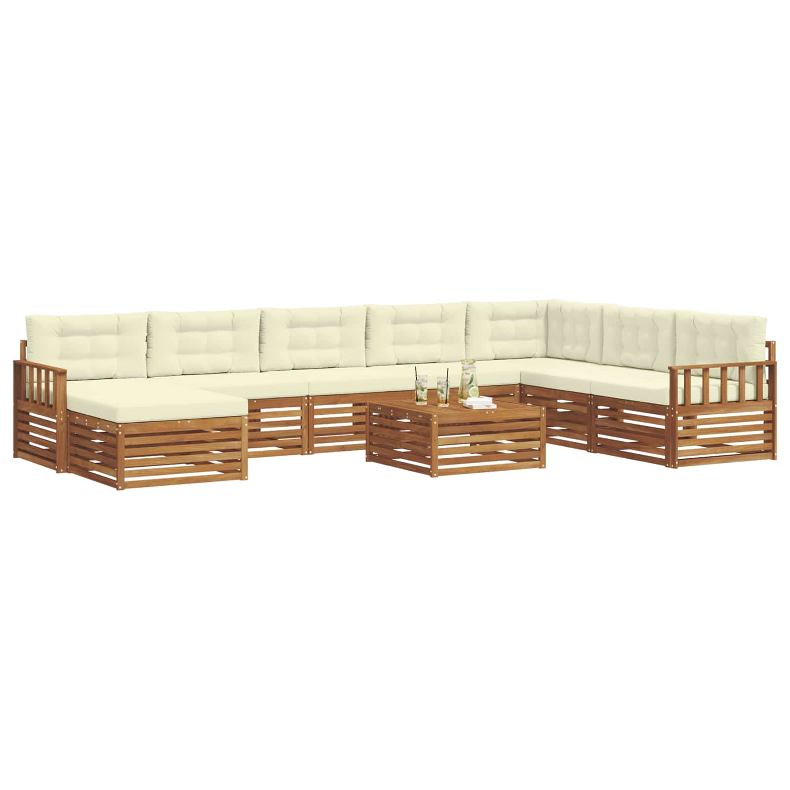 Seturi de canapele 9 pcs Natural și Crem Lemn Solid de Acacia GartenMobel Dekor