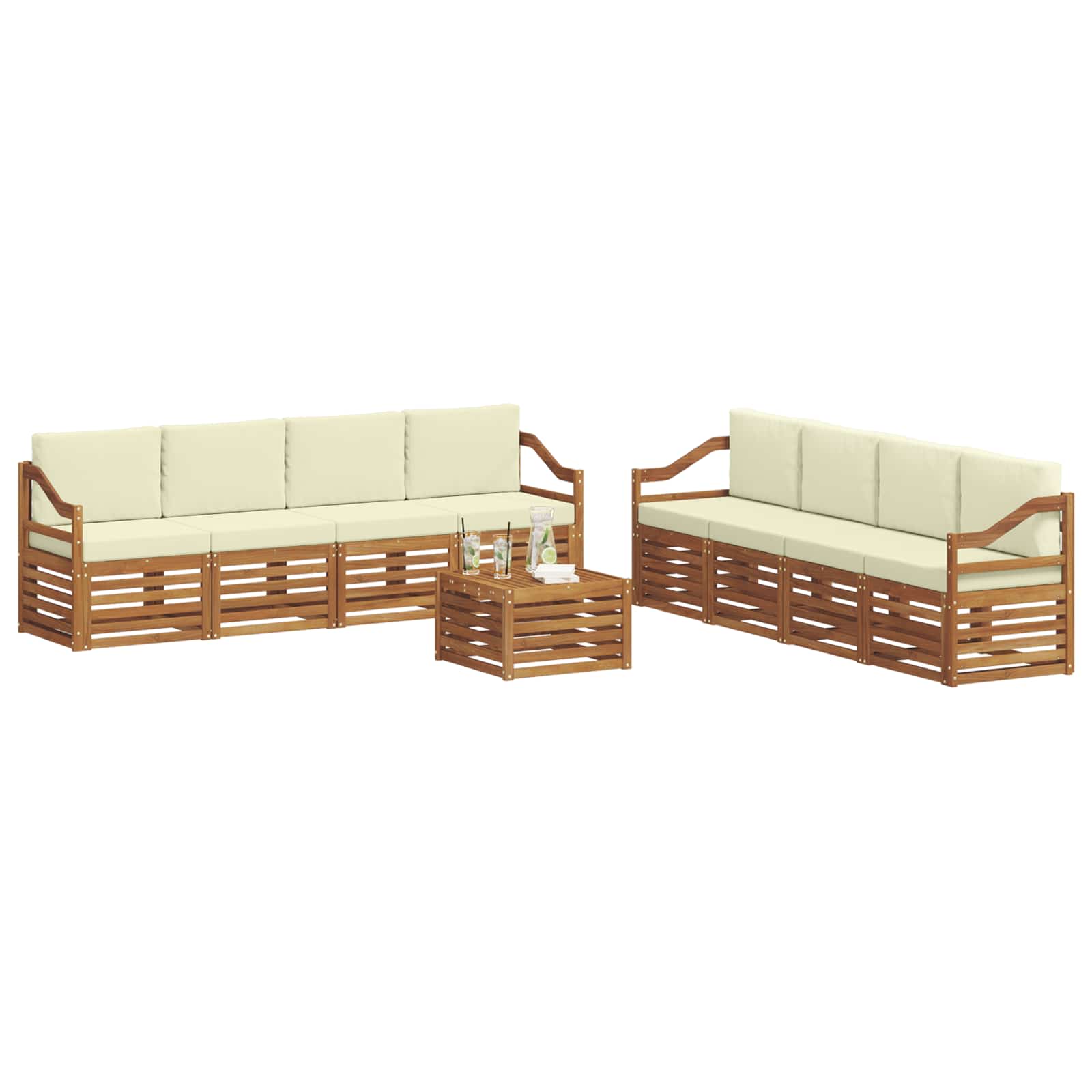 Seturi de canapele 9 pcs Natural și Crem Lemn Solid de Acacia GartenMobel Dekor