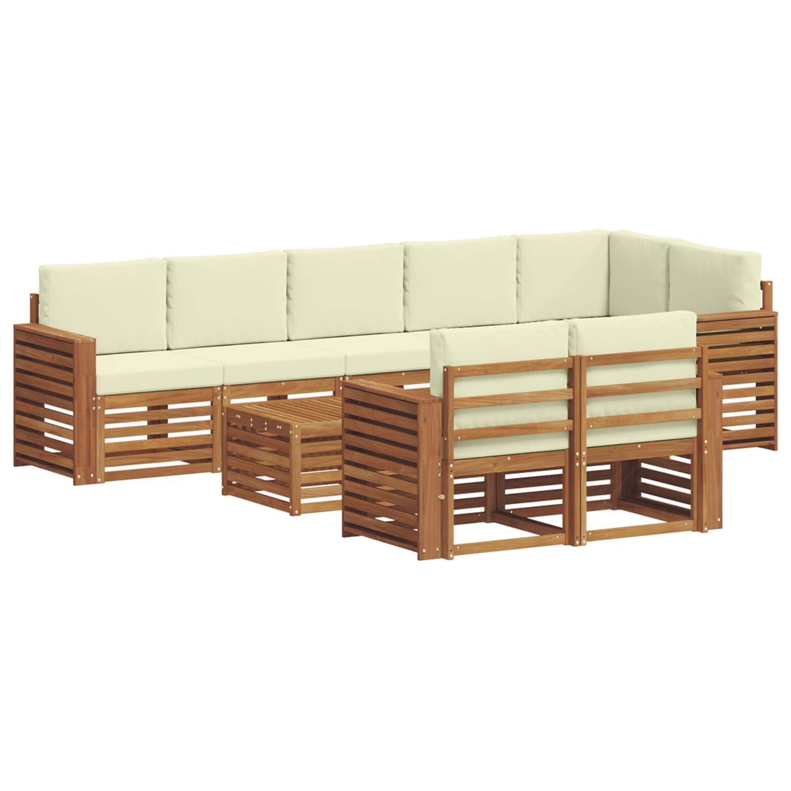 Seturi de canapele 9 pcs Natural și Crem Lemn Solid de Acacia GartenMobel Dekor