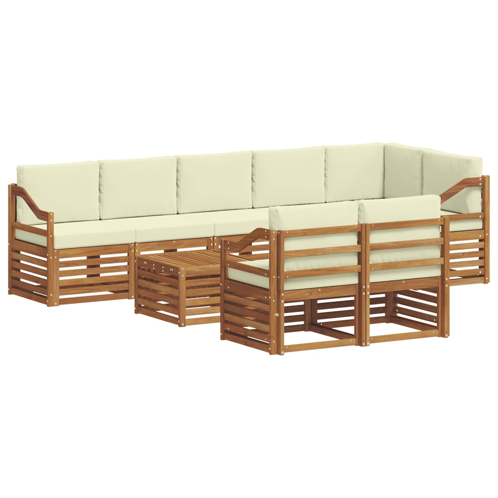 Seturi de canapele 9 pcs Natural și Crem Lemn Solid de Acacia GartenMobel Dekor