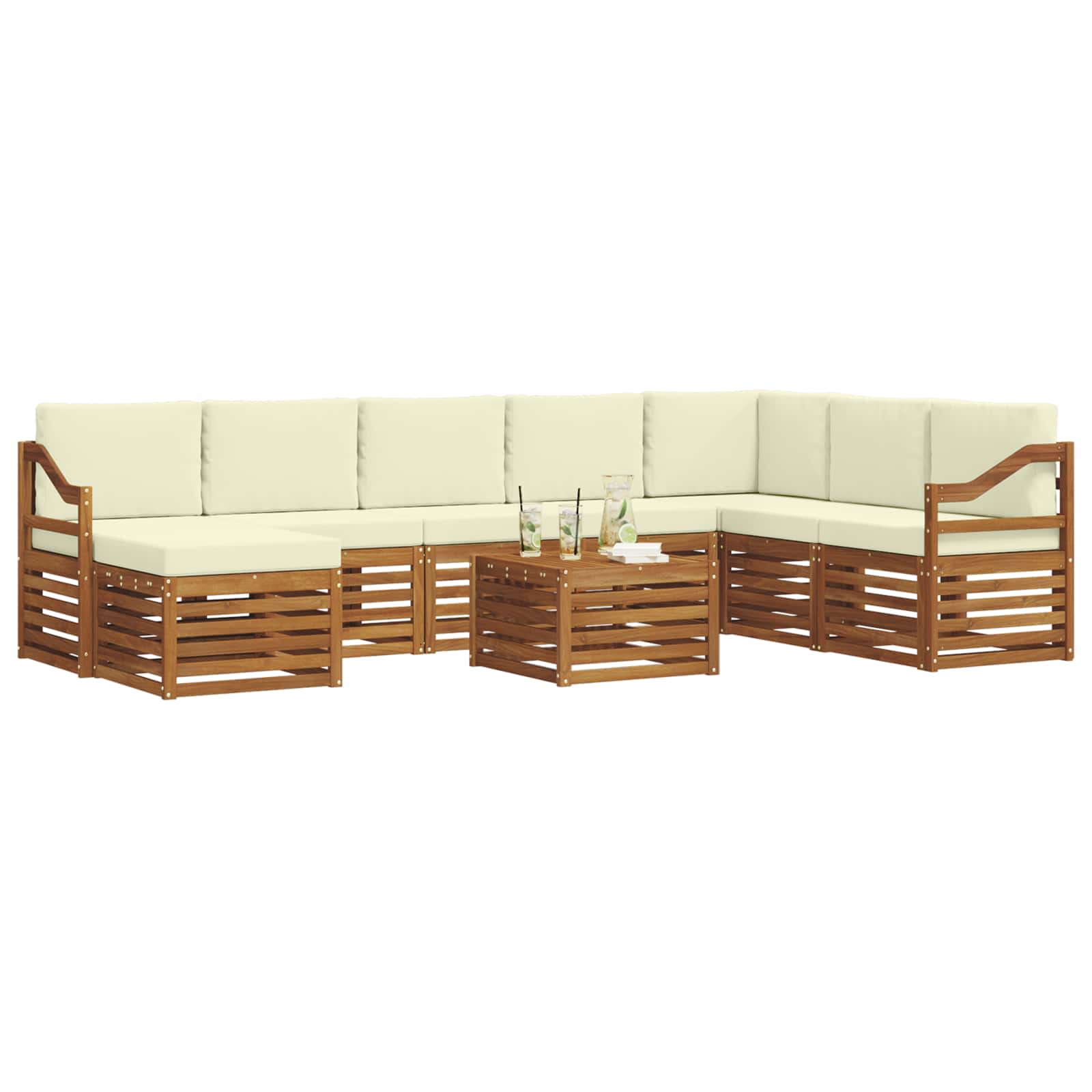 Seturi de canapele 9 pcs Natural și Crem Lemn Solid de Acacia GartenMobel Dekor