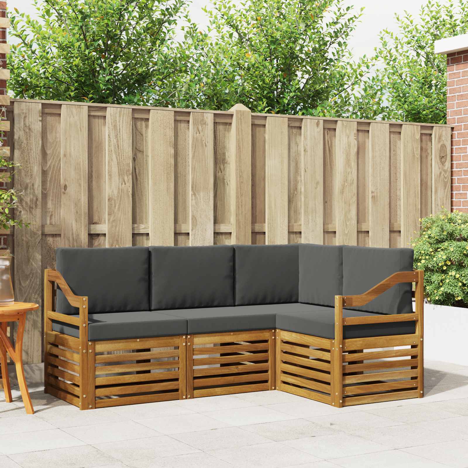 Setul ăsta de mobilă de exterior combină stilul cu funcționalitatea, devenind centrul de atenție pentru orice grădină sau terasă. Are un design modern, cu linii clare și detalii simple, ce aduc eleganță și încurajează relaxarea în aer liber și întâlnirile cu prietenii. Făcut din lemn solid de acacia, setul e durabil și are un aspect plăcut care durează, fiind alegerea ideală pentru cei care vor confort și un design frumos în mobilierul de exterior.