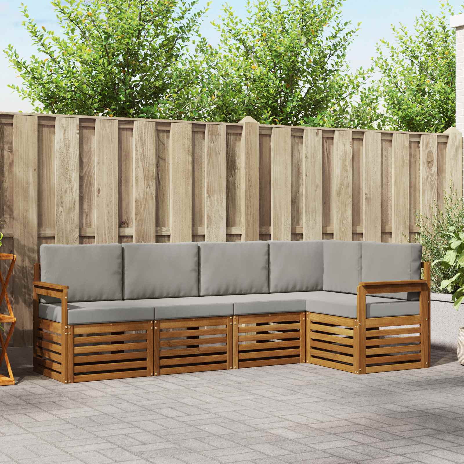Setul de mobilier pentru exterior combină stilul cu funcționalitatea, creând un punct central fain pentru orice grădină sau terasă. Designul lui modern, cu linii clare și detalii simple, adaugă eleganță, fiind perfect pentru momente de relaxare în aer liber și întâlniri cu prietenii. Făcut din lemn masiv de acacia, îți garantează durabilitate și un aspect vizual care durează, fiind alegerea ideală pentru cei care apreciază un mobilier de exterior prietenos și rafinat.