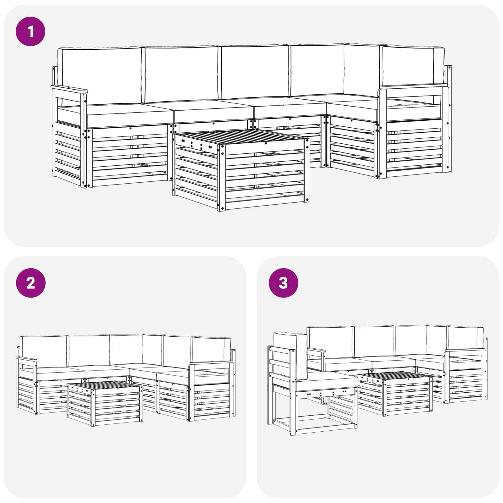 - 4 x Canapea din mijloc: 63 x 59 x 73 cm (LxWxH)