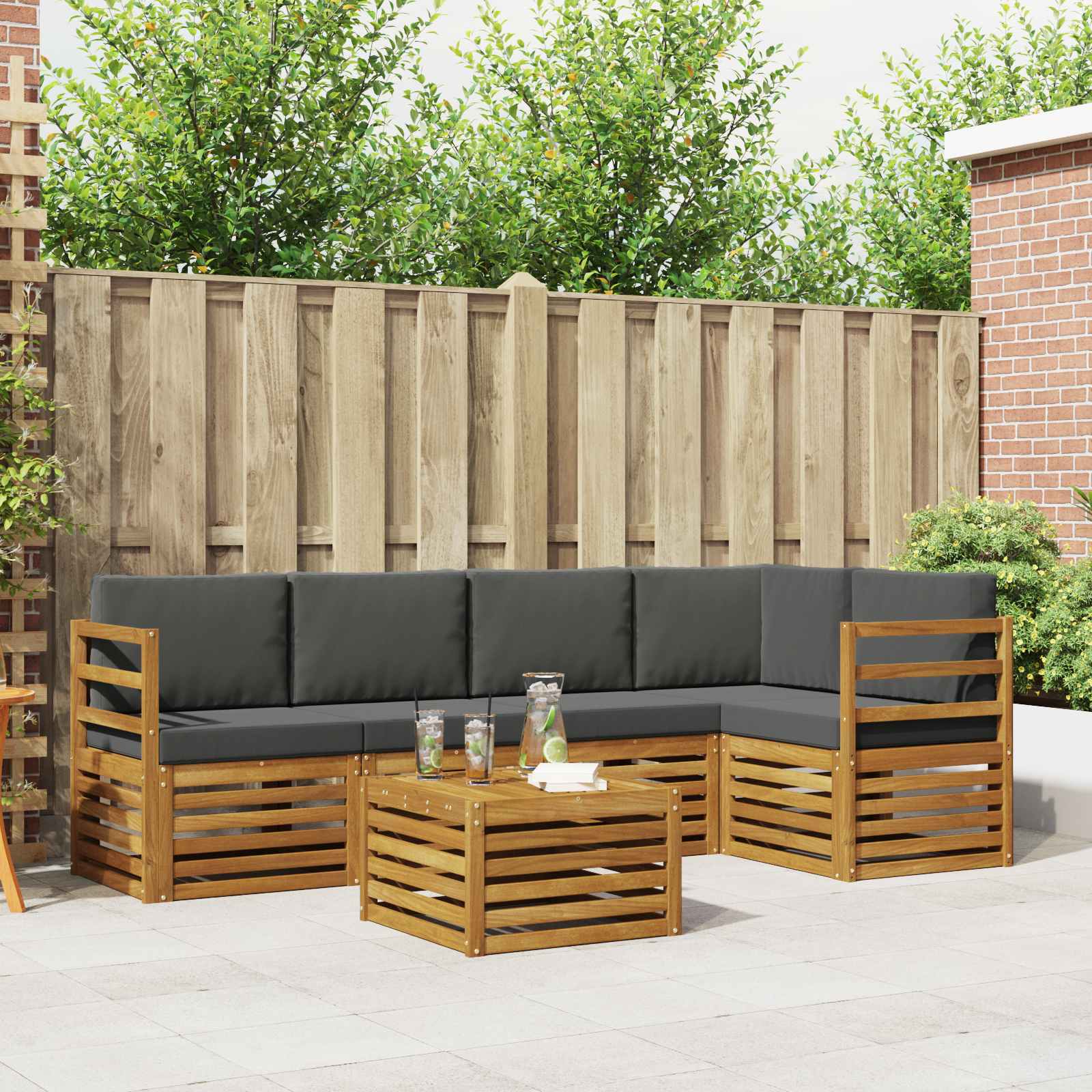 Setul de mobilier de exterior combină stilul cu funcționalitatea și devine un punct central pentru orice grădină sau terasă. Designul modern, cu linii clare și detalii simple, aduce eleganță și sprijină relaxarea și întâlnirile sociale afară. Fabricat din lemn masiv de acacia, setul este foarte durabil și are un aspect care durează, fiind alegerea perfectă pentru cei care caută atât un mobilier practic, cât și unul rafinat pentru exterior.