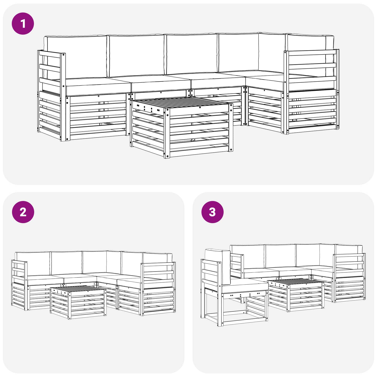 - 4 x Canapea din mijloc: 63 x 59 x 73 cm (LxWxH)