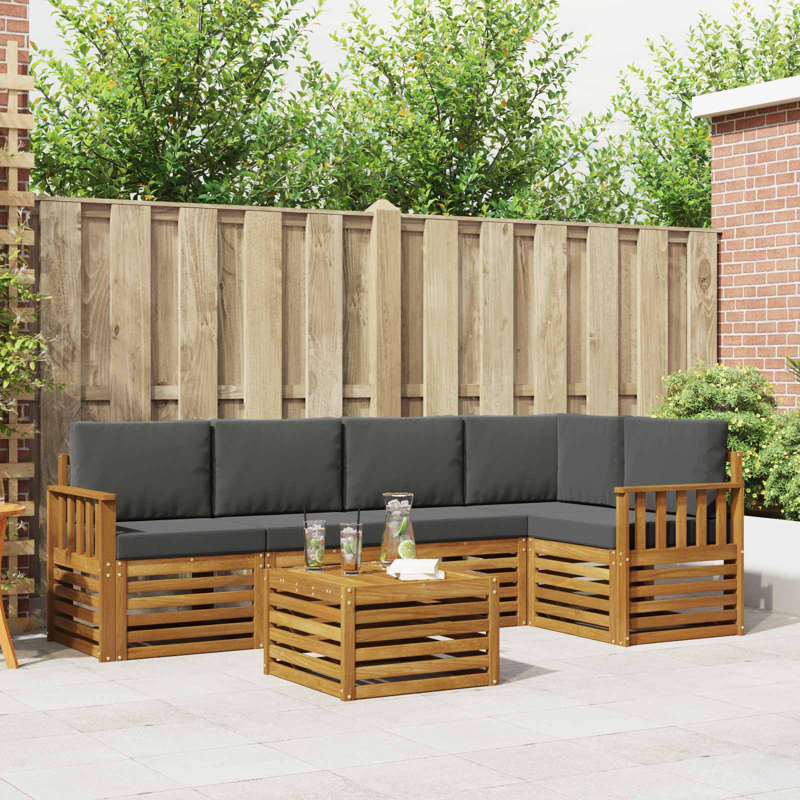 Setul de mobilier de exterior combină stilul cu funcționalitatea și devine un punct central pentru orice grădină sau terasă. Designul modern, cu linii clare și detalii simple, aduce eleganță și sprijină relaxarea și întâlnirile sociale afară. Fabricat din lemn masiv de acacia, setul este foarte durabil și are un aspect care durează, fiind alegerea perfectă pentru cei care caută atât un mobilier practic, cât și unul rafinat pentru exterior.