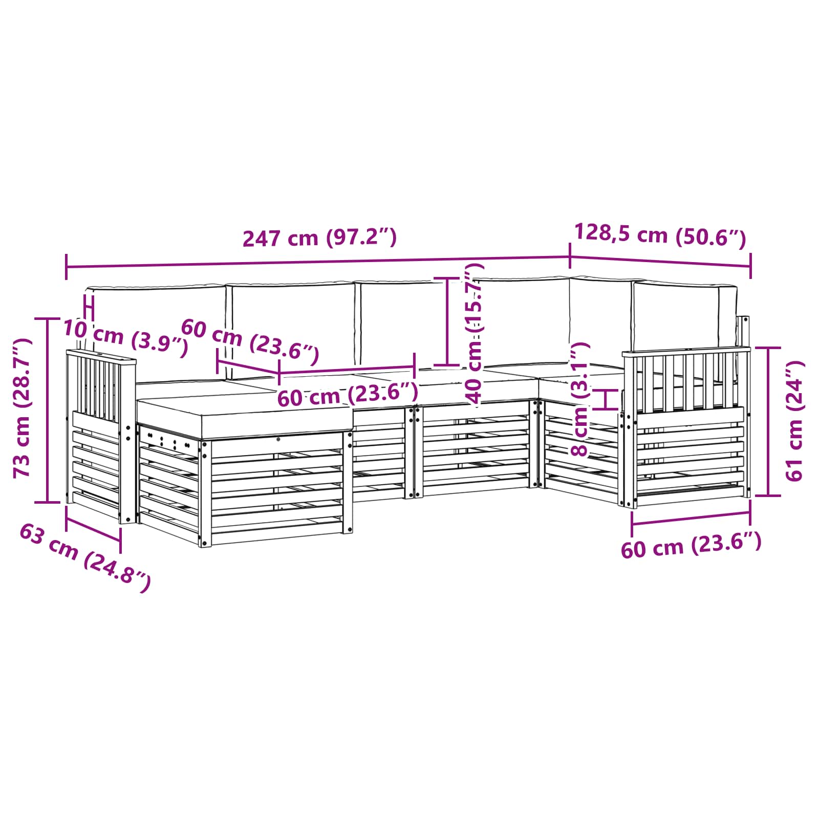 - 6 x Pernă de șezut: 60 x 60 x 8 cm (L x l x H)