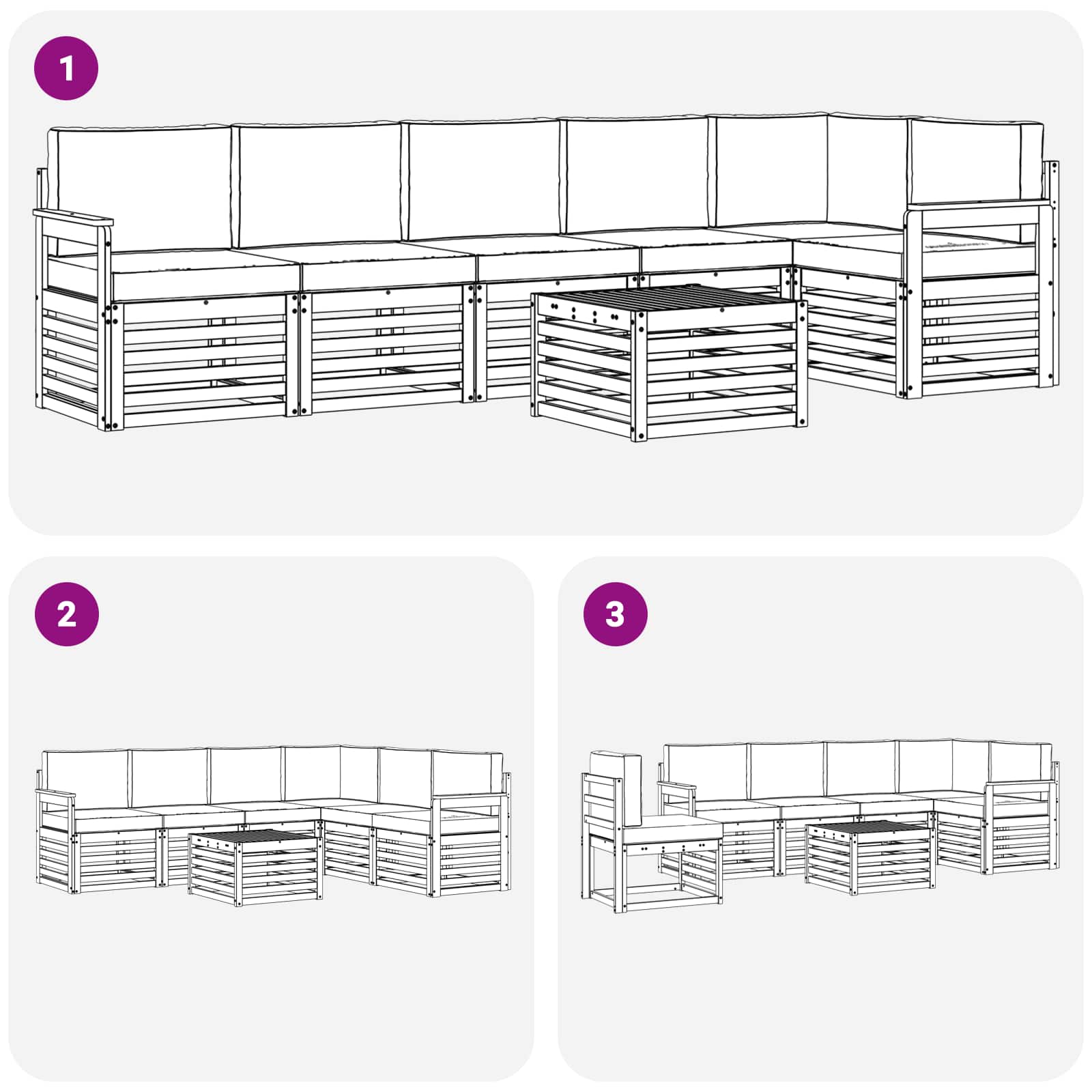 - 6 x Perne de șezut: 60 x 60 x 8 cm (LxWxH)
