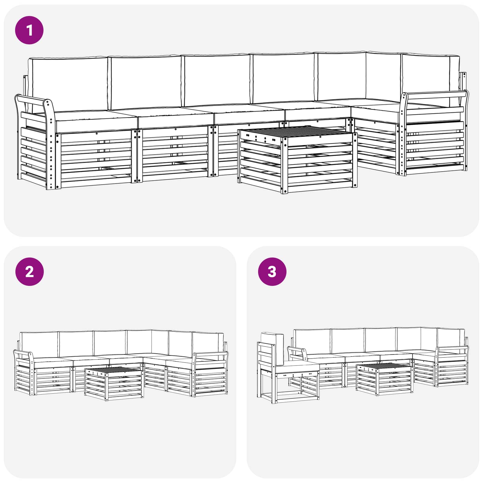 Setul nostru de canapele secționale pentru exterior, din lemn masiv de acacia, combină stilul cu rezistența, fiind ideal pentru grădini, terase sau lângă piscină. Cu un design modern și chic, aceste piese oferă o aranjare modulară versatilă care se potrivește oricărui spațiu și ocazie. Creează o atmosferă relaxantă și plăcută cu nuanțele sale de maro, ce se integrează perfect în natură, fie că e vorba de o după-amiază leneșă sau o întâlnire veselă.