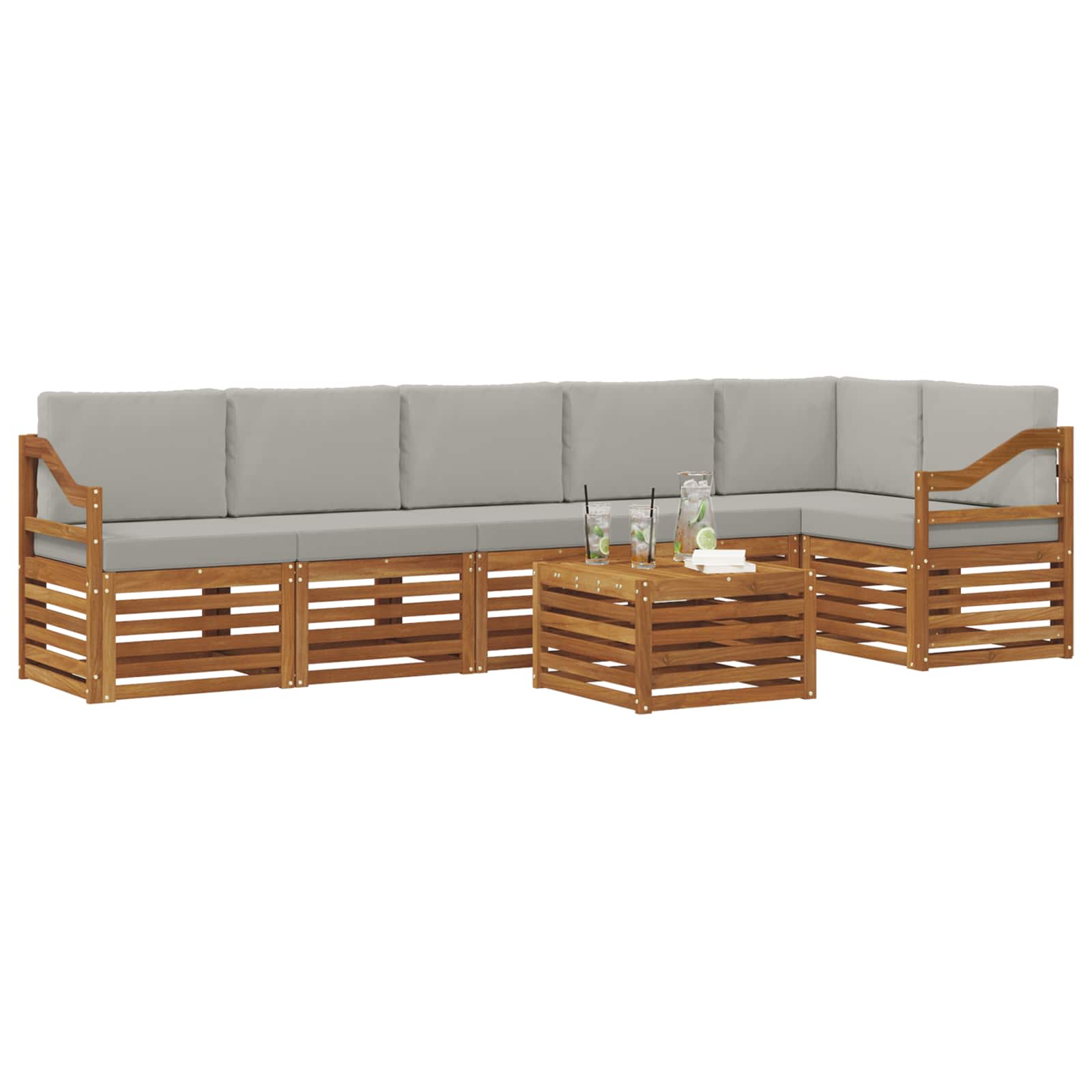 - Componente incluse: Bucură-te de confortul oferit de brațele și scaunele din lemn masiv de acacia care îmbogățesc atmosfera, dar oferă și suport. Fiecare componentă completează designul, asigurându-ți o experiență de ședere confortabilă.