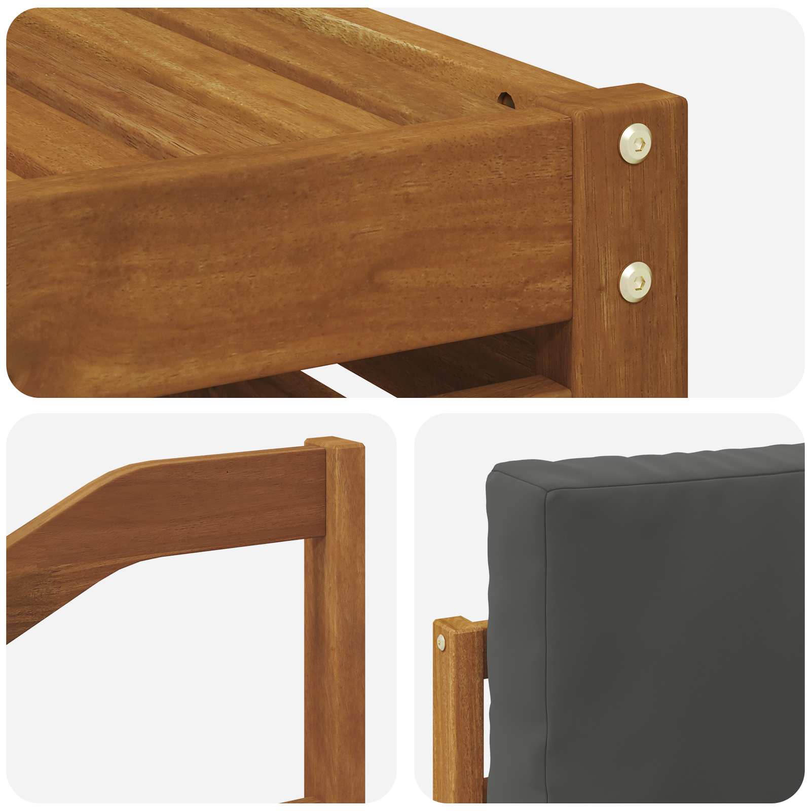 Setul nostru de mobilier pentru exterior combină stilul cu utilitatea, fiind un punct de atracție în orice grădină sau terasă. Are un design modern, cu linii clare și detalii minime, care îți aduce eleganță și te ajută să te relaxezi în aer liber, perfect pentru socializare. Făcut din lemn masiv de acacia, oferă durabilitate și arată bine pe termen lung – ideal pentru cei care vor să îmbine utilul cu estetica în mobilierul de exterior.