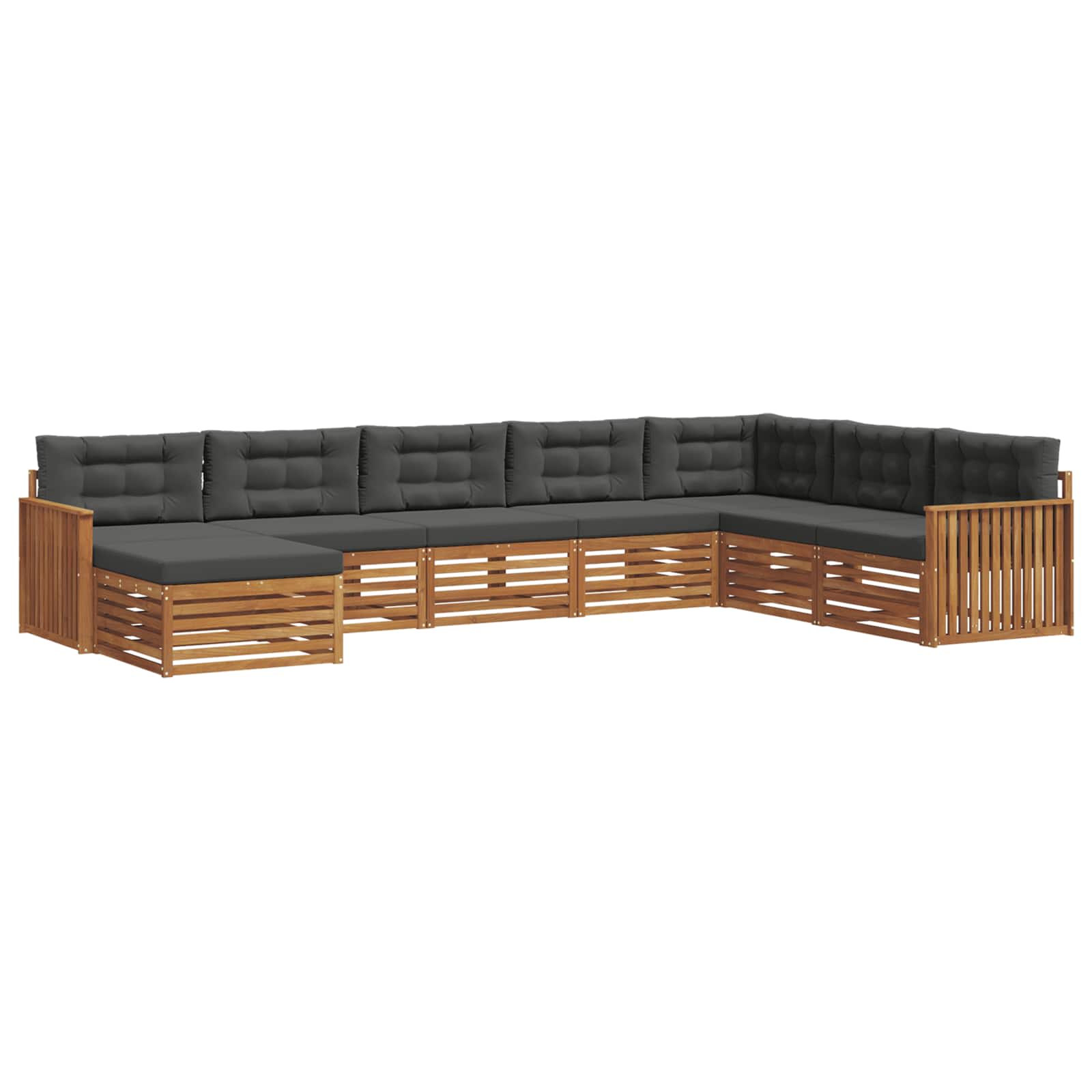 Setul de mobilier de exterior îmbină stilul cu funcționalitatea, creând un punct de atracție pentru orice grădină sau terasă. Designul său modern, așezat pe linii drepte și detalii simple, aduce eleganță și susține relaxarea în aer liber împreună cu întâlniri sociale. Făcut din lemn masiv de acacia, acesta oferă durabilitate și un aspect atrăgător care rezistă în timp, fiind alegerea ideală pentru cei care caută atât practicitate, cât și un design elegant în mobilierul de exterior.