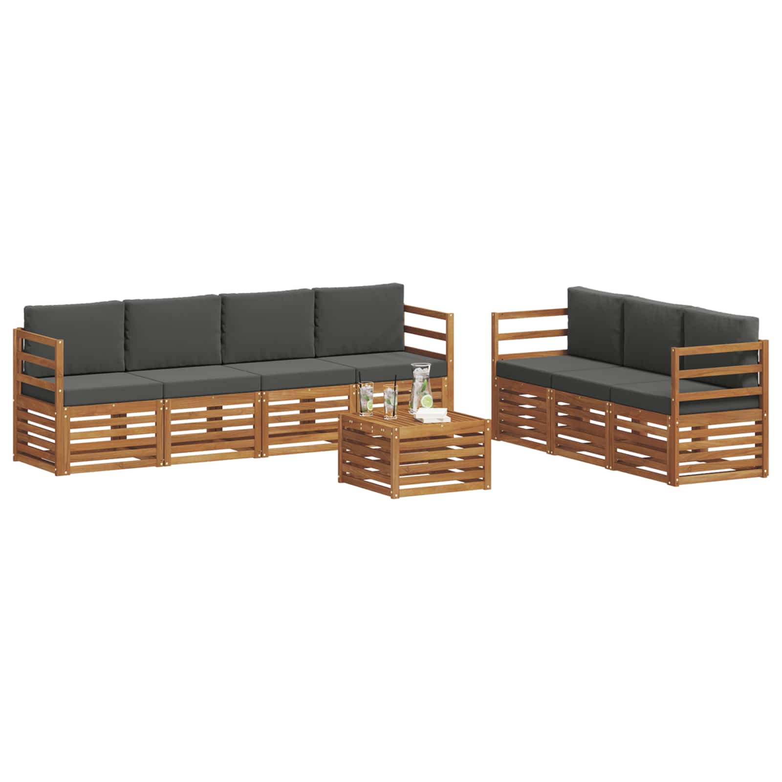 Setul de mobilier pentru exterior combină stilul cu utilitatea, făcându-l un punct de atracție pentru orice grădină sau terasă. Designul său modern, cu linii curate și detalii simple, aduce eleganță și sprijină relaxarea în aer liber. Fabricat din lemn masiv de acacia, setul oferă durabilitate și un aspect plăcut, fiind alegerea perfectă pentru cei care caută un mobilier atât practic, cât și stilat pentru exterior.