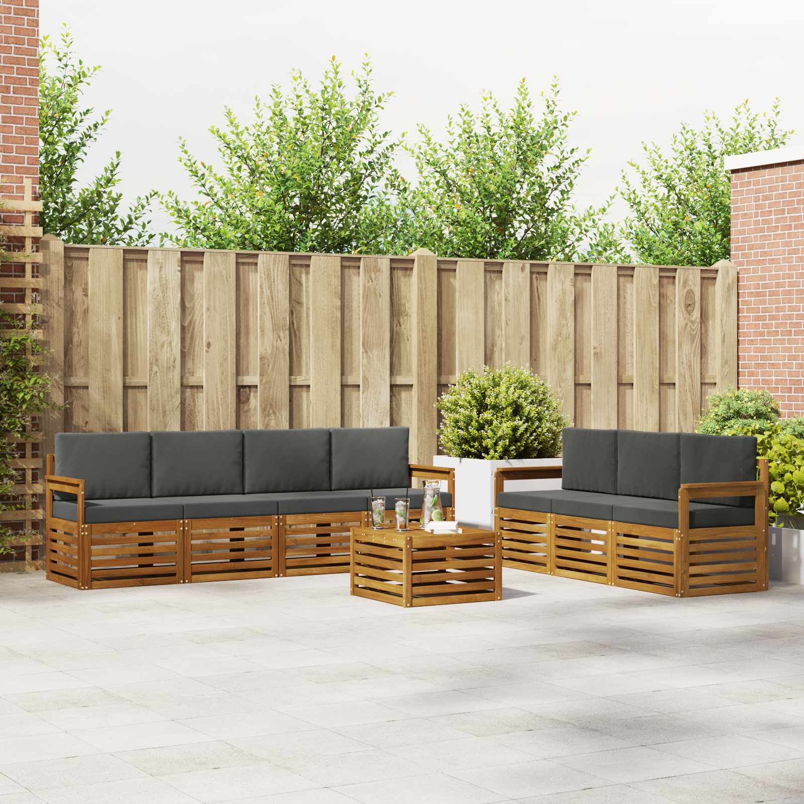 Setul de mobilier pentru exterior combină stilul cu utilitatea, făcându-l un punct de atracție pentru orice grădină sau terasă. Designul său modern, cu linii curate și detalii simple, aduce eleganță și sprijină relaxarea în aer liber. Fabricat din lemn masiv de acacia, setul oferă durabilitate și un aspect plăcut, fiind alegerea perfectă pentru cei care caută un mobilier atât practic, cât și stilat pentru exterior.
