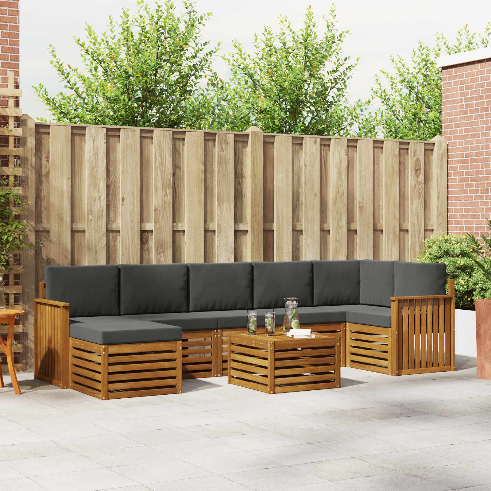 Setul ăsta de mobilier pentru exterior e combinația perfectă între stil și funcționalitate, făcându-l un magnet de priviri pentru orice grădină sau terasă. Designul modern, cu linii clare și detalii simple, aduce eleganță și asigură relaxare afară, fiind ideal pentru întâlniri sociale. E făcut 100% din lemn de acacia masiv, deci e durabil și arată bine mult timp, fiind alegerea perfectă pentru cei care vor un mix de practică și un look rafinat.