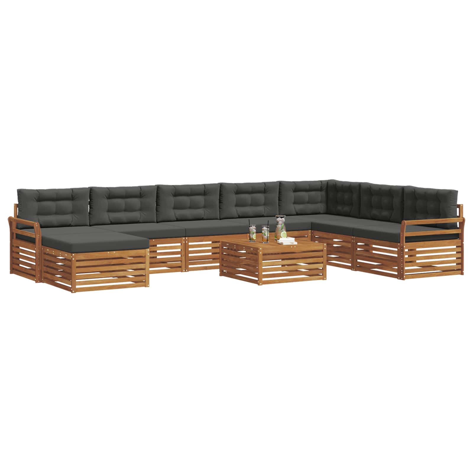 - Construcție din material: Fabricat din lemn masiv de acacia, setul ăsta de canapele e super durabil și are un finisaj natural atrăgător, perfect pentru exterior. Granulația densă și caracterul unic al lemnului creează un spațiu cald și primitor, plus că uleiurile naturale protejează împotriva insectelor pentru o folosire pe termen lung.
