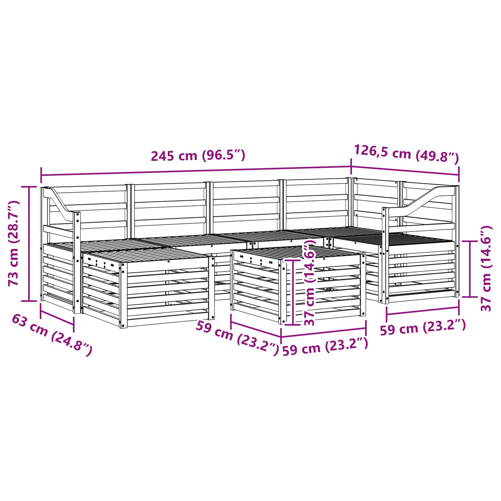- 4 x Canapea mijloc: 63 x 59 x 73 cm (LxWxH)