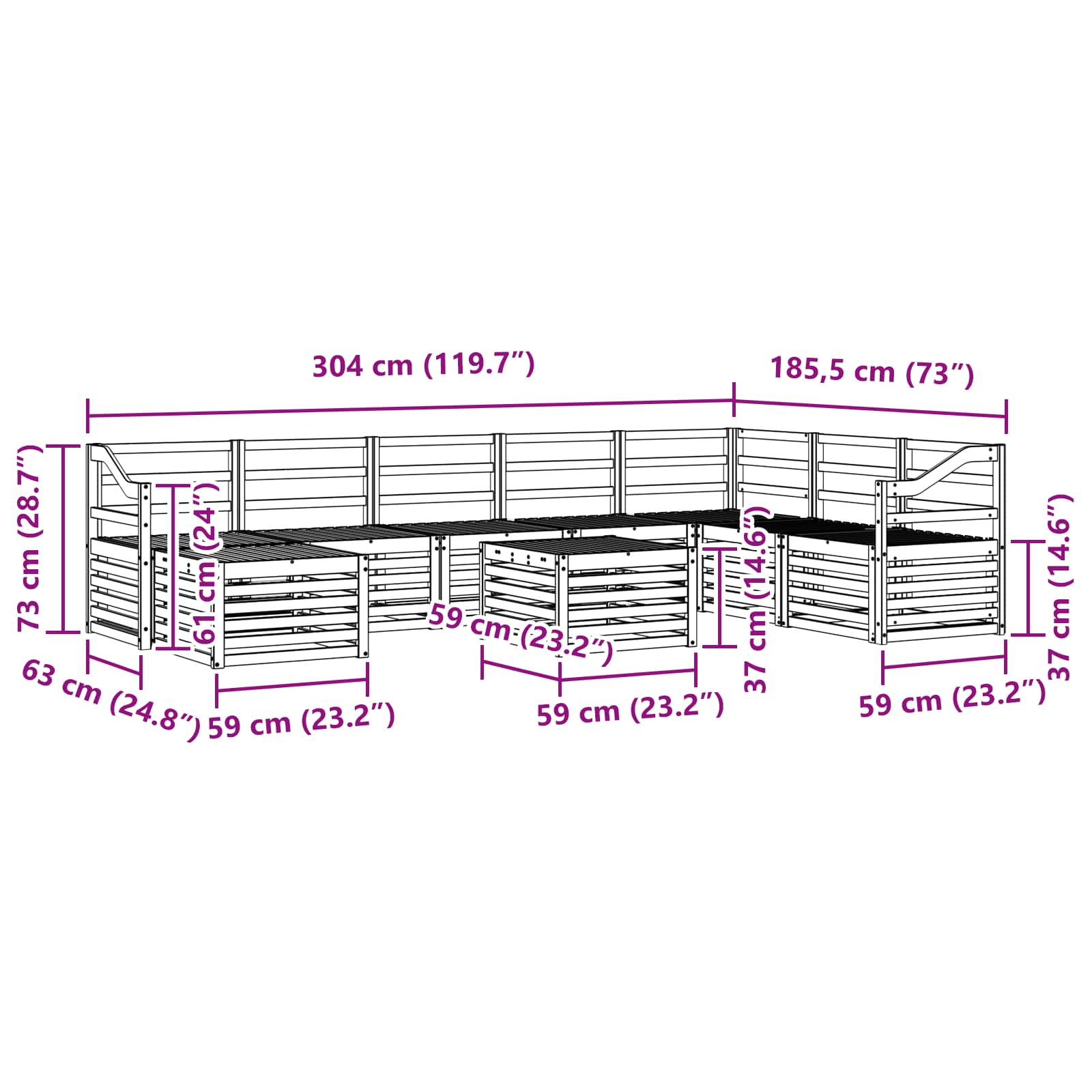 - 7 x Canapea mijlocie: 63 x 59 x 73 cm (LxWxH)