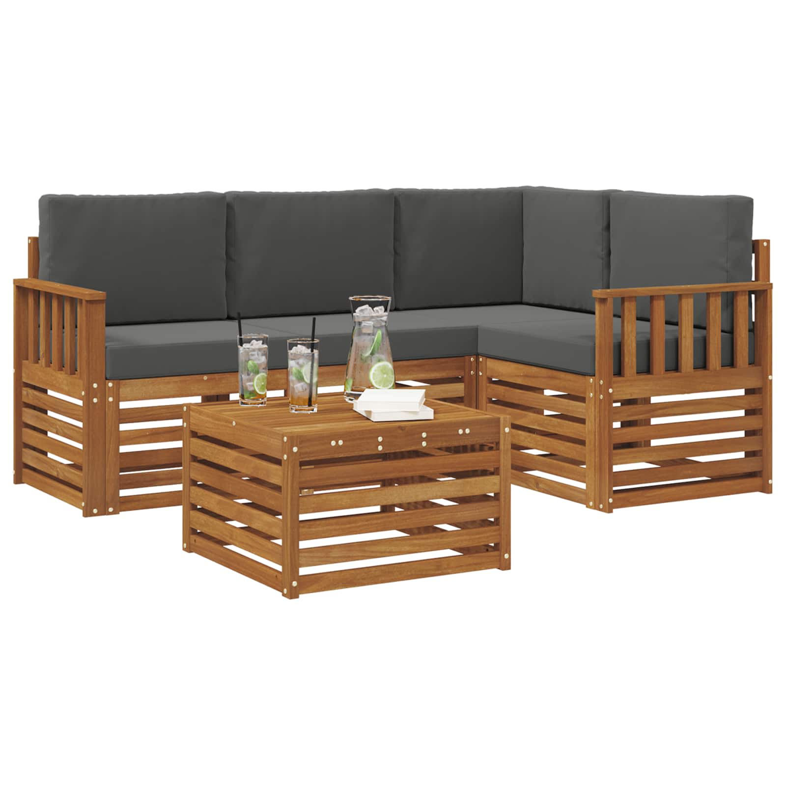 Acest set de canapea sectională pentru exterior aduce împreună un design modern cu o funcționalitate practică, perfect pentru grădină, terasă sau în jurul piscinei. E realizat din lemn masiv de acacia, având o nuanță frumoasă de maro. Fie că ești cu prietenii sau vrei doar să te bucuri de o cafea, acest set e versatil, permițându-ți să-l aranjezi cum vrei.
