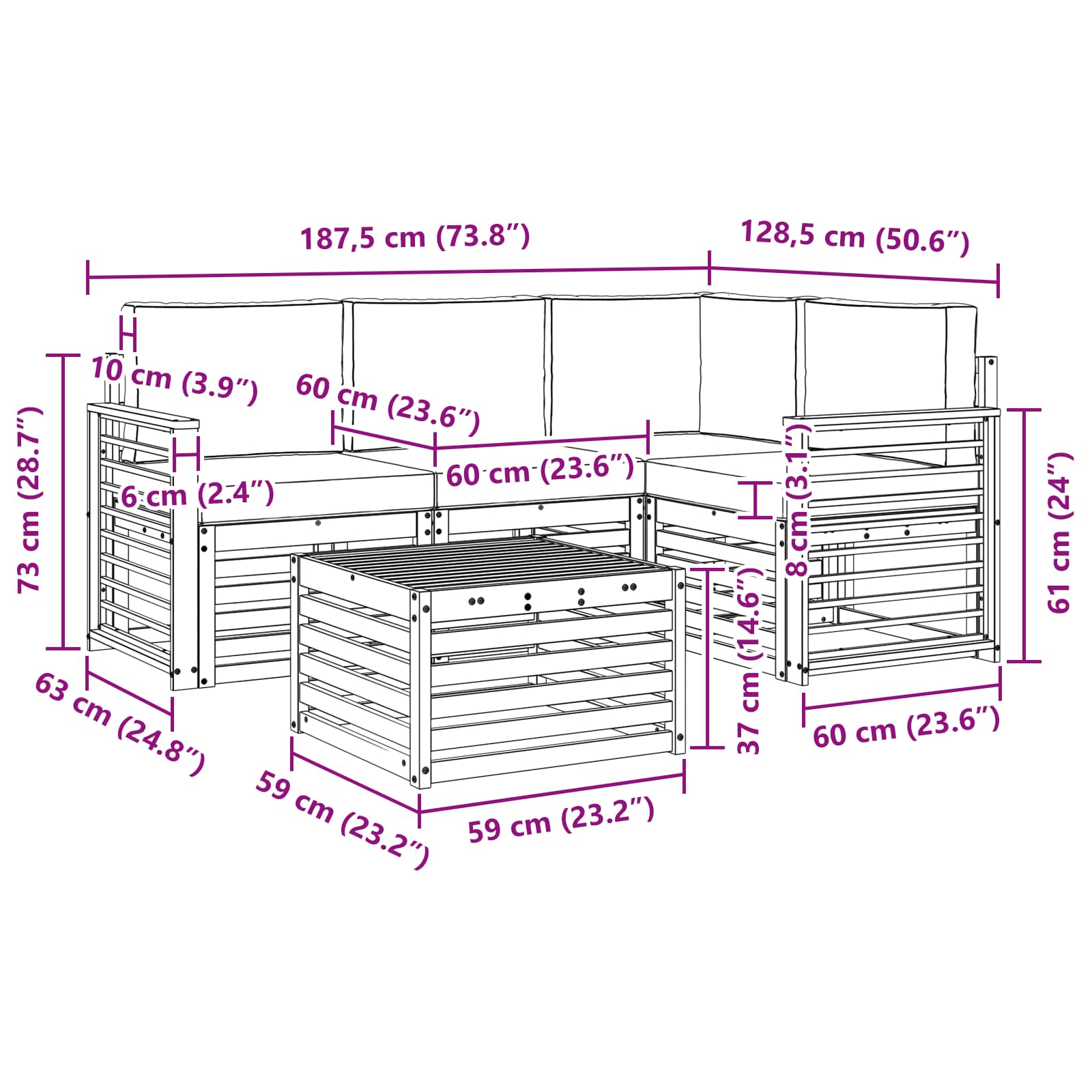 - 4 x perne de șezut: 60 x 60 x 8 cm (LxWxH)