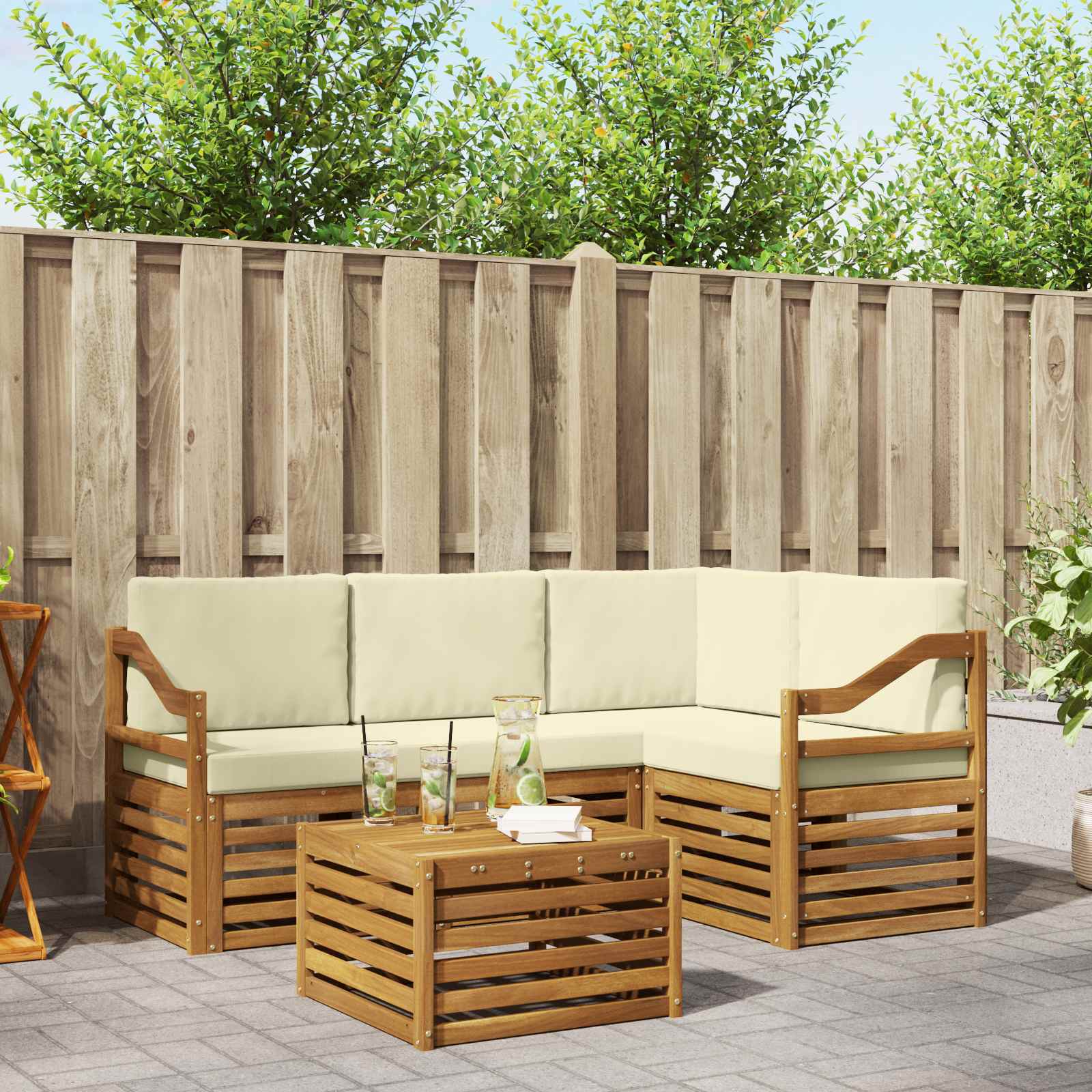 Seturi de mobilier cu pernă 5 pcs Natural și Crem Lemn compozit GartenMobel Dekor