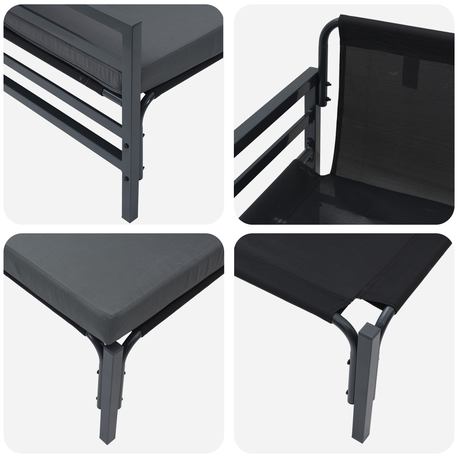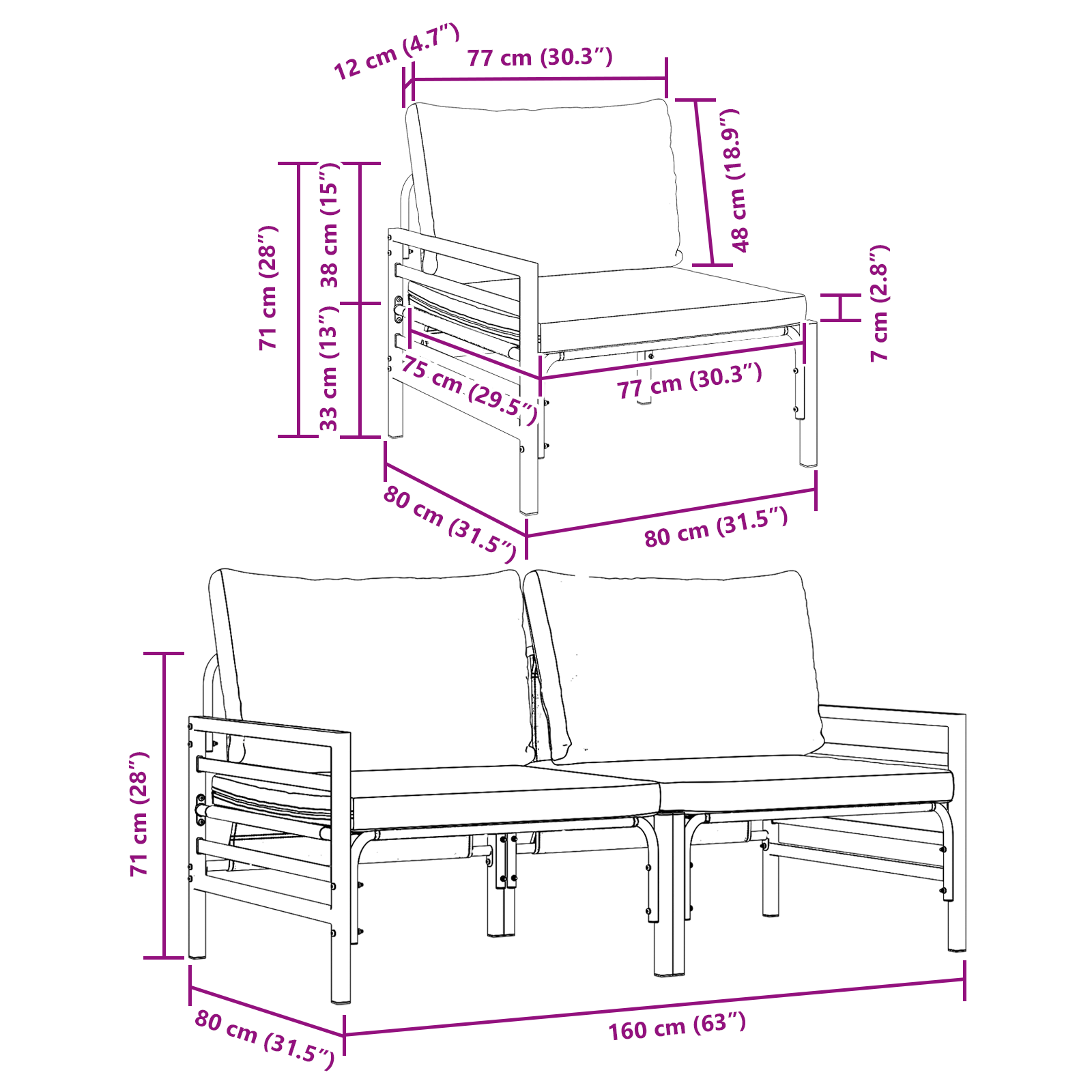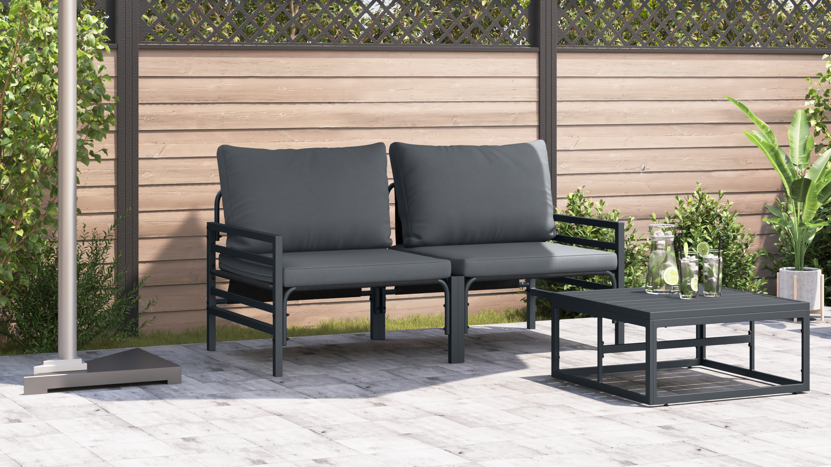 Setul ăsta de canapele secționale pentru exterior are un vibe modern, cu un design simplu și linii curate. Îți dă un spațiu flexibil să te așezi pe balcon sau terasă. Finisajul electrostatic îi dă un aspect elegant care se potrivește în orice outdoor. E gândit pentru confort, deci e ideal pentru relaxare singur sau cu prietenii și familia.