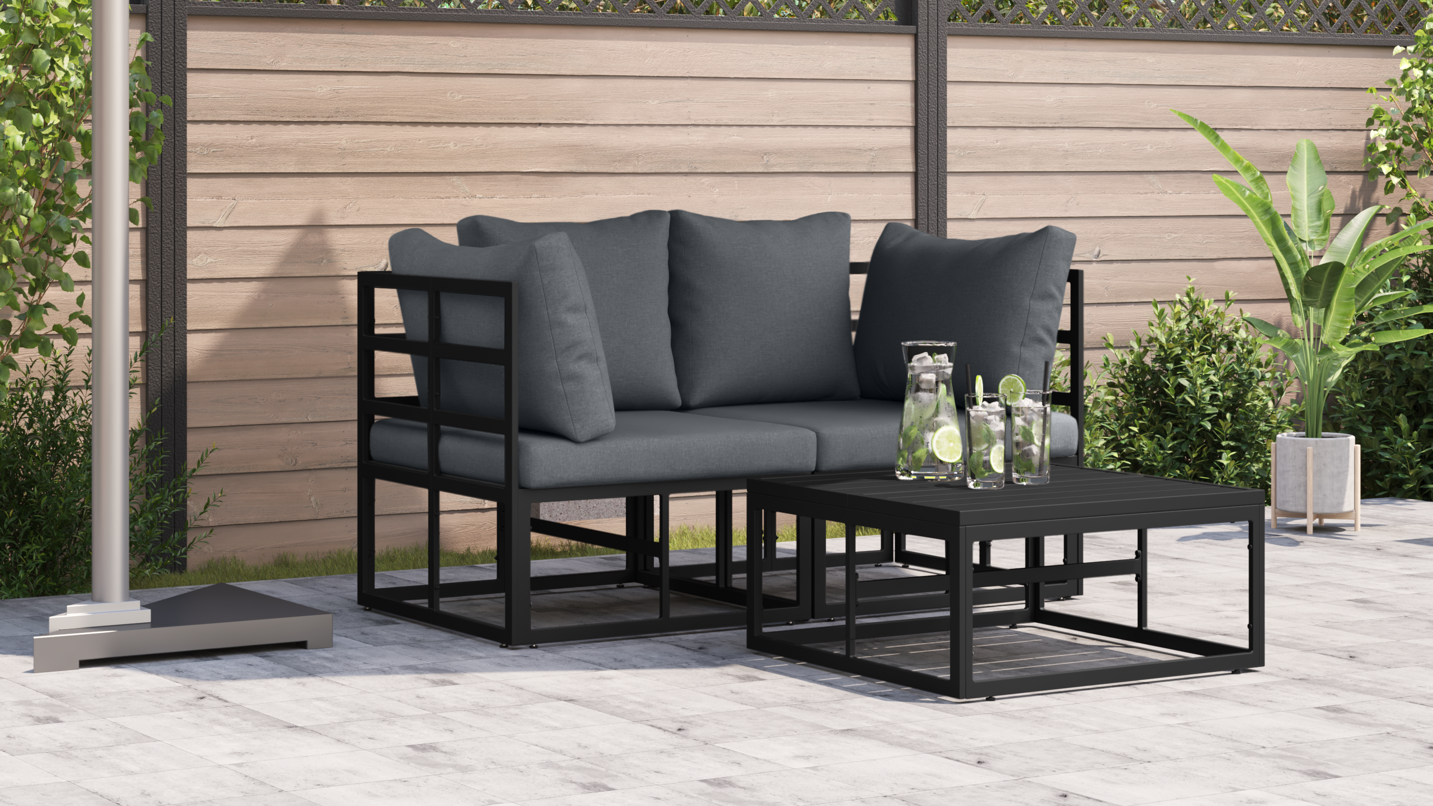 - Construcție din Aluminiu: Fabricat din aluminiu puternic, setul ăsta e robust și stabil. Nu se va rugini, așa că e o alegere bună pentru exterior. Finisajul elegant se potrivește cu multe stiluri fără să fie prea încărcat.