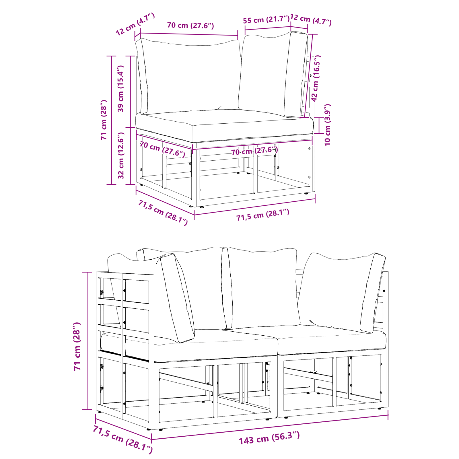 - Componente Incluse: Fiecare piesă are un cadru solid și suficient loc pentru a te așeza confortabil. Designul permite să te relaxezi în diferite poziții, fie că organizezi o petrecere sau te relaxezi.