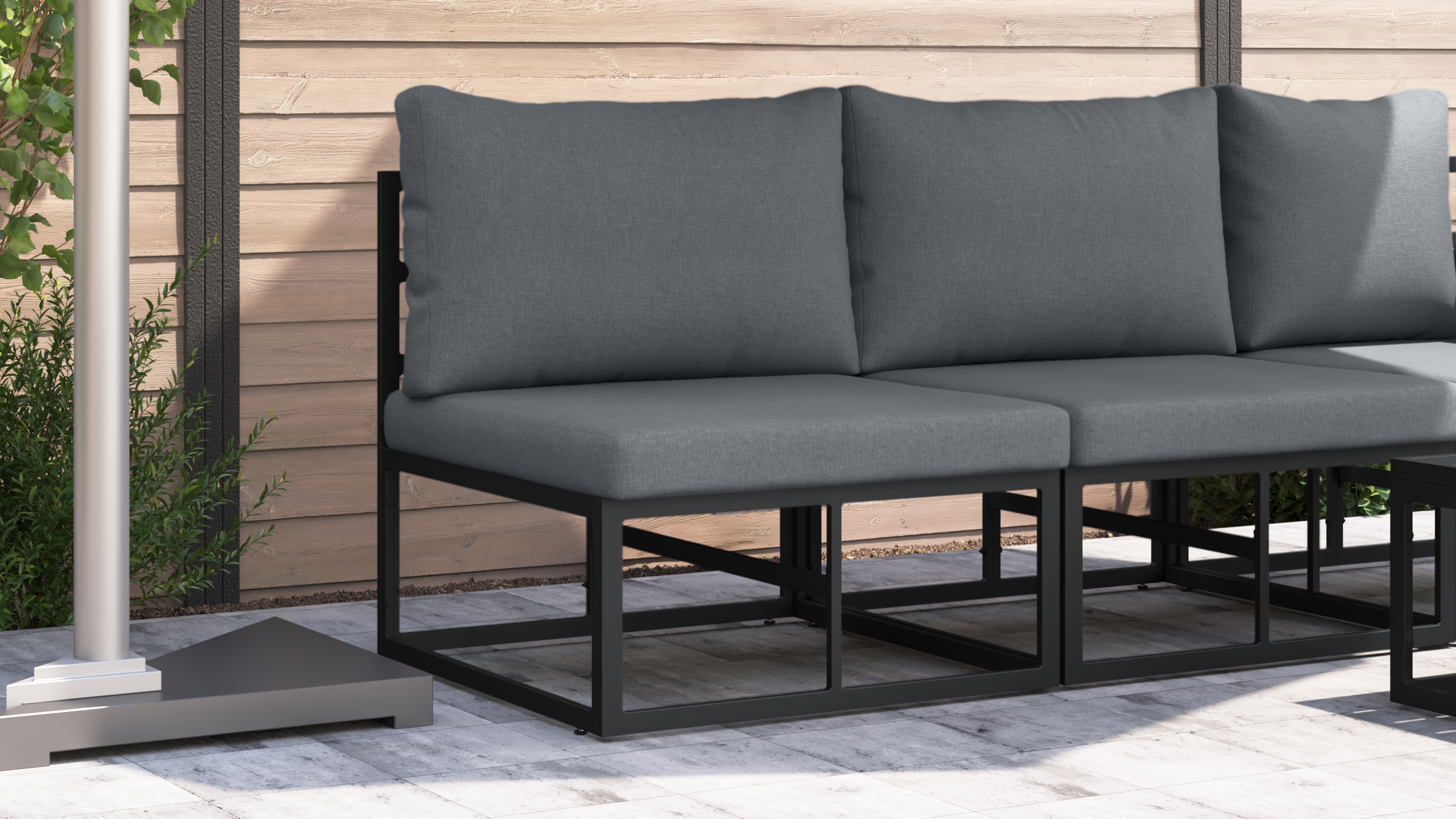 - Construcție din Aluminiu: Fabricat din aluminiu puternic, setul ăsta e robust și stabil. Nu se va rugini, așa că e o alegere bună pentru exterior. Finisajul elegant se potrivește cu multe stiluri fără să fie prea încărcat.