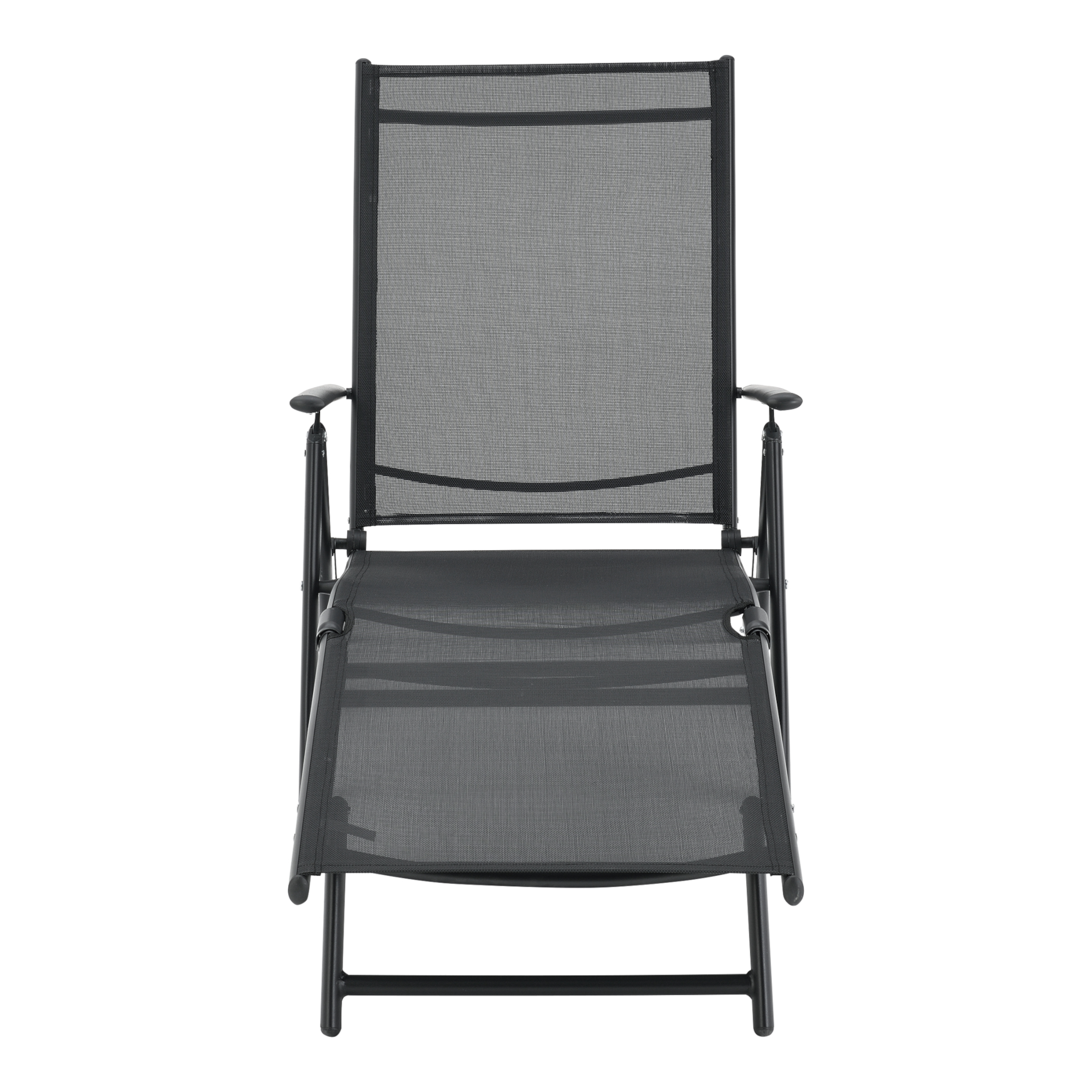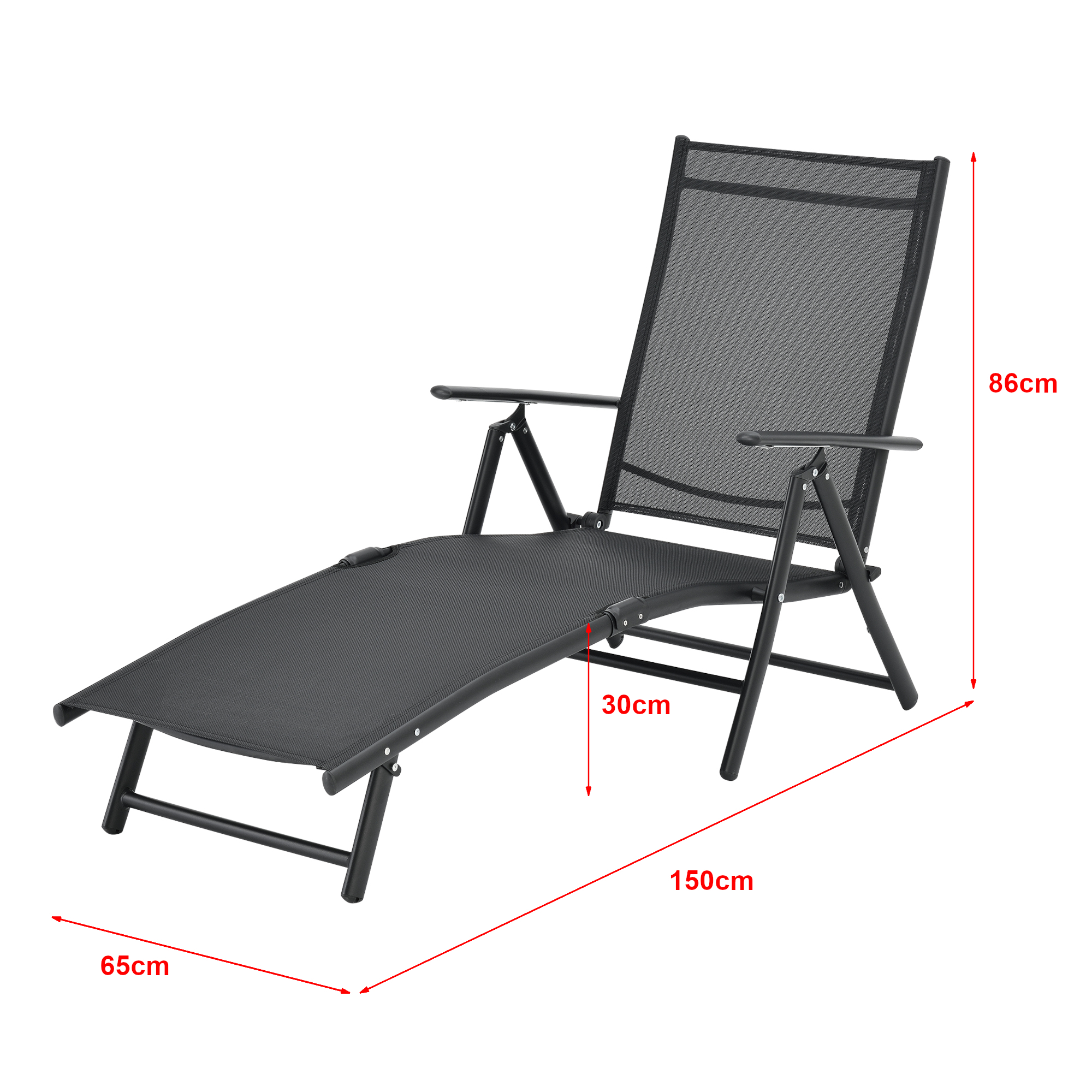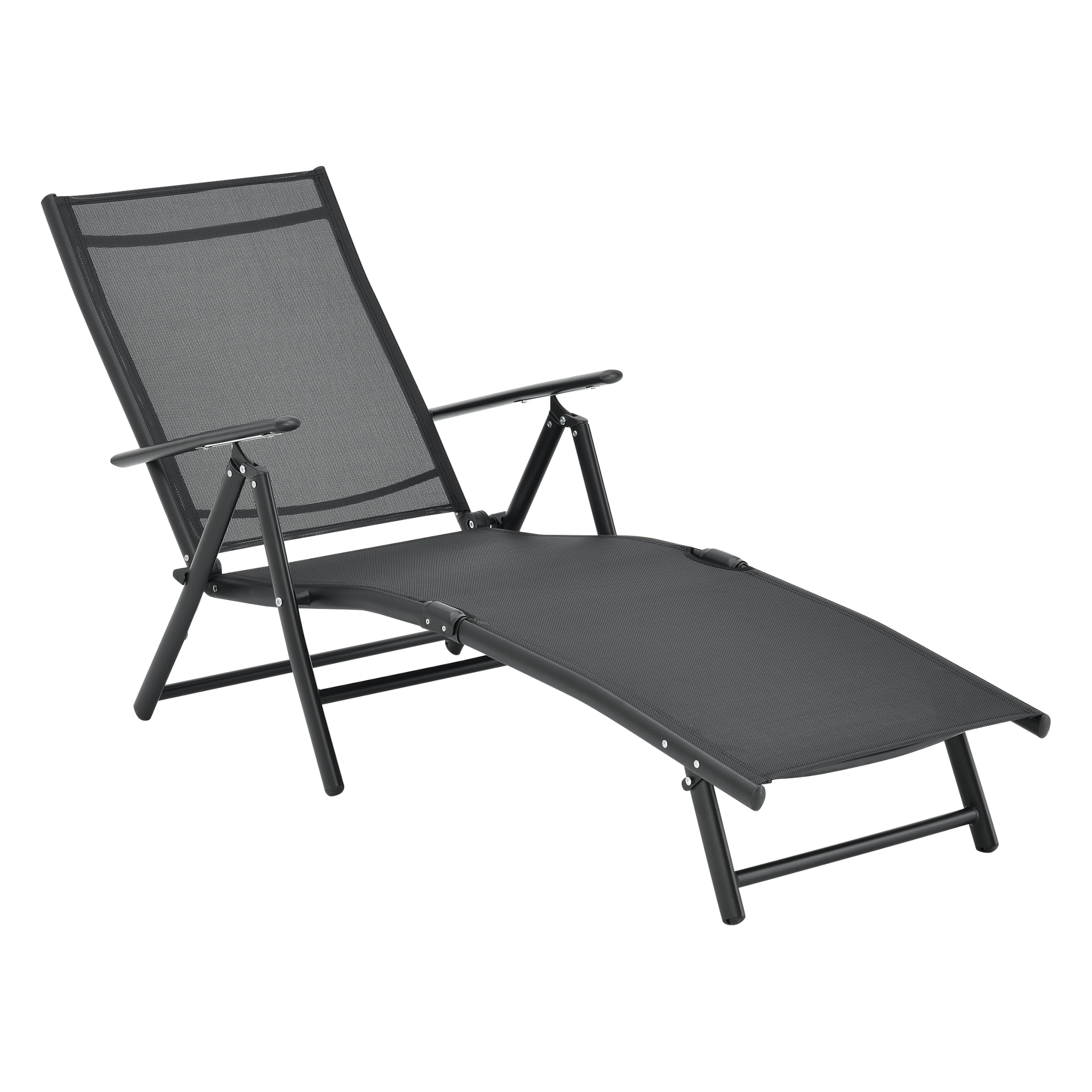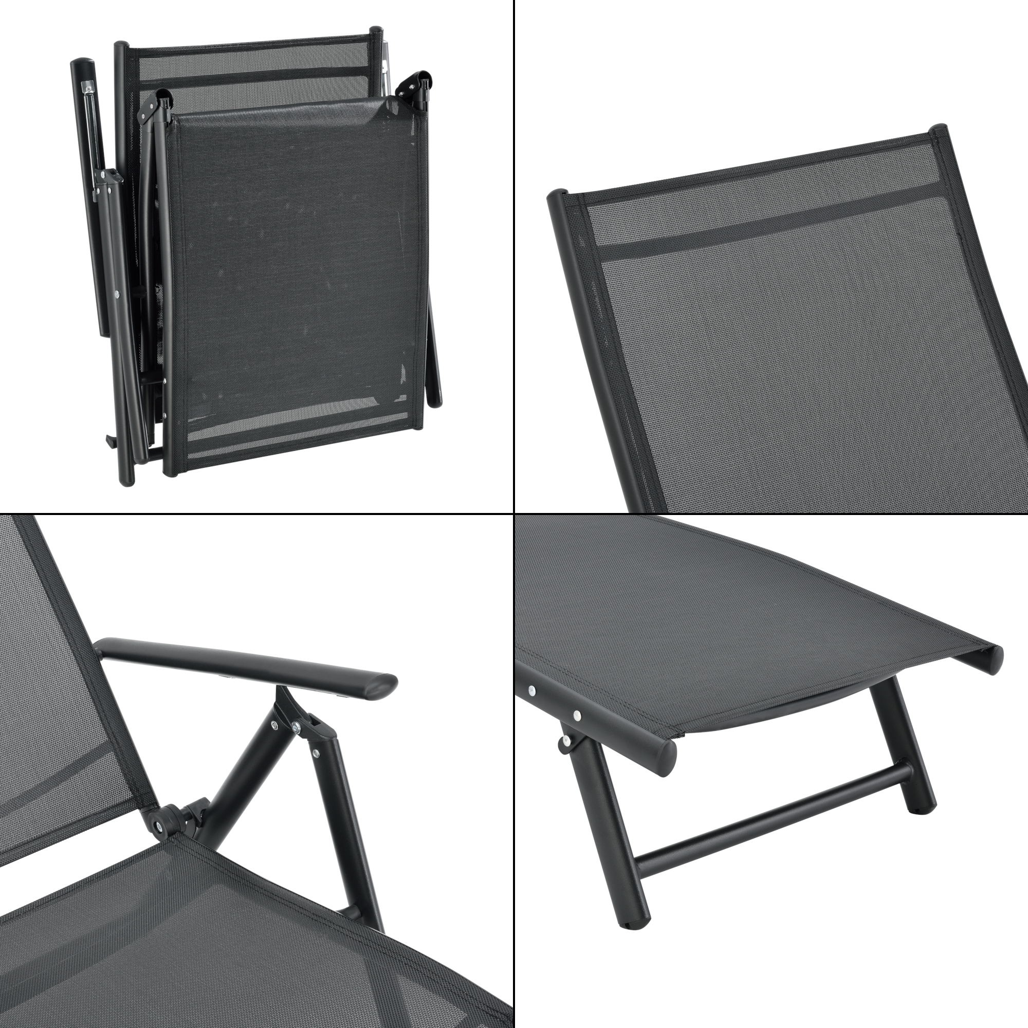 Sezlong Alborea cu spatar reglabil si cadru aluminiu negru [en.casa] HausGarden Leisure