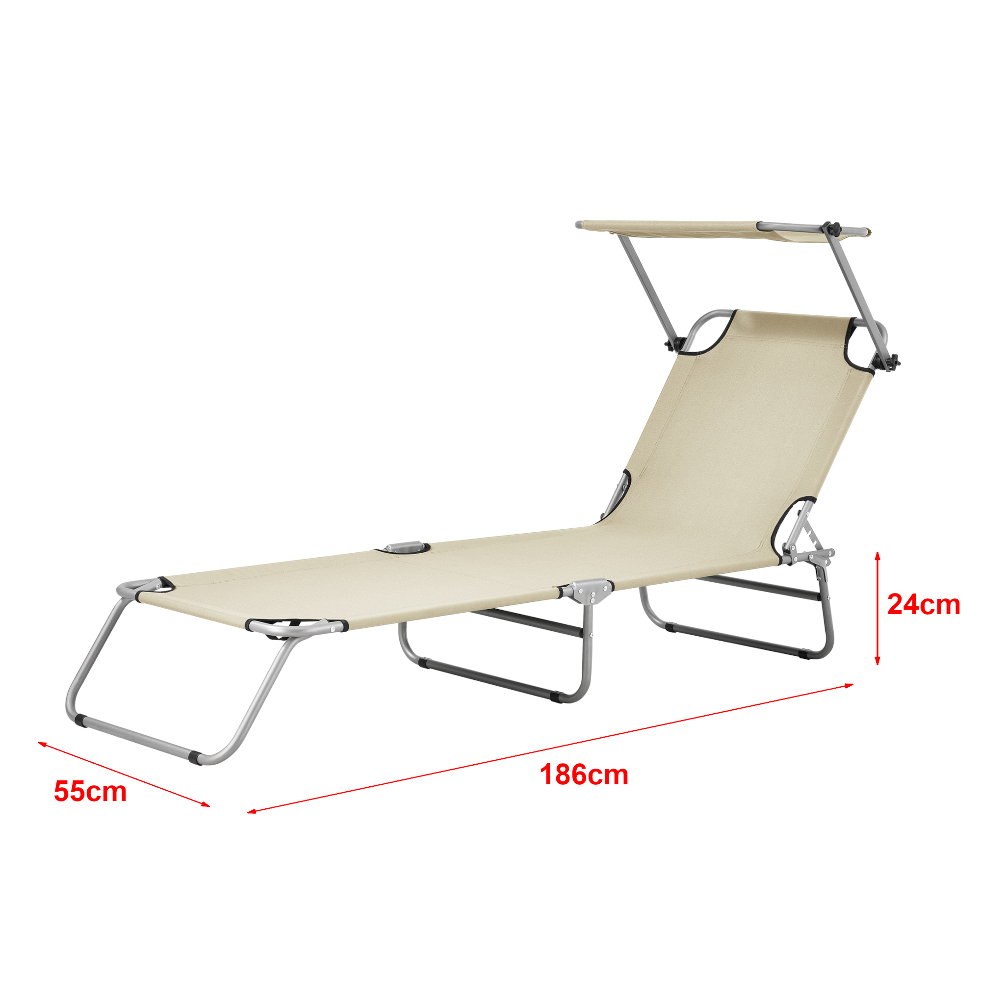 Acest sezlong cu parasolar este alegerea perfecta atunci cand doriti sa va bucurati de o baie de soare acasa, la strand, in gradina sau pe balcon.In cazul in care doriti sa va protejati fata de razele soarelui o puteti face cu ajutorul parasorarului, care nu poate fi reglat in trepte.Sezlongul este prevazut cu doua manere in vederea unui transport cat mai comod si usor.Astfel il puteti lua cu dumneavoastra oriunde in vacanta. Datorita faptului ca este pliabil il puteti depozita cu economie de spatiu.