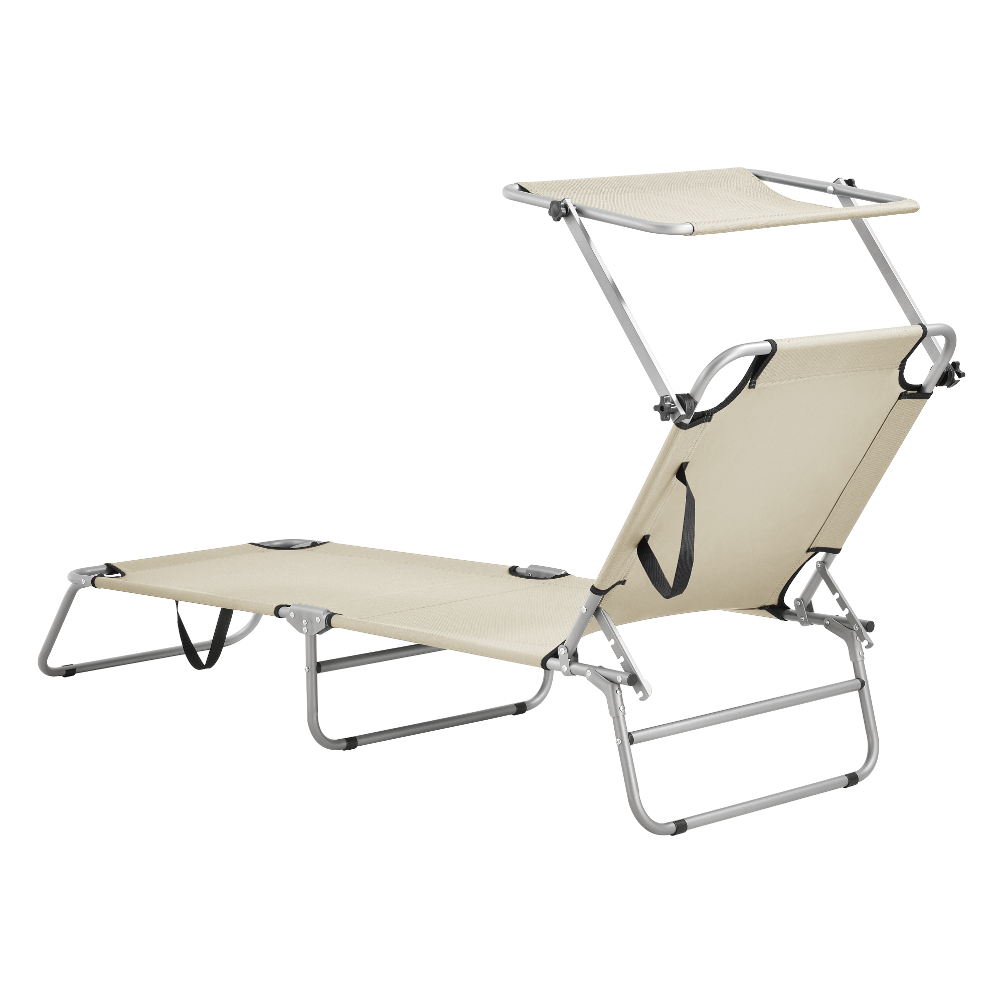Sezlong Argozelo B bej reglabil in trepte cu parasolar [casa.pro] HausGarden Leisure