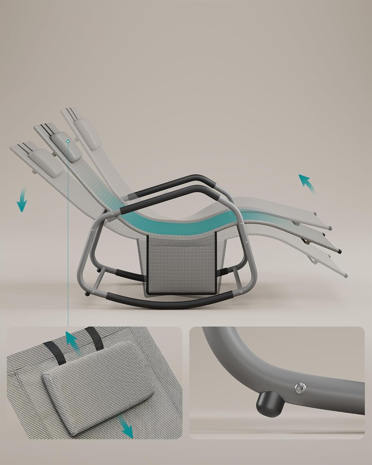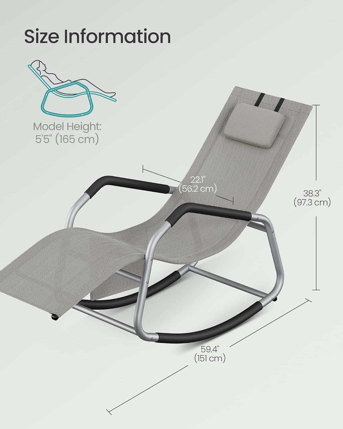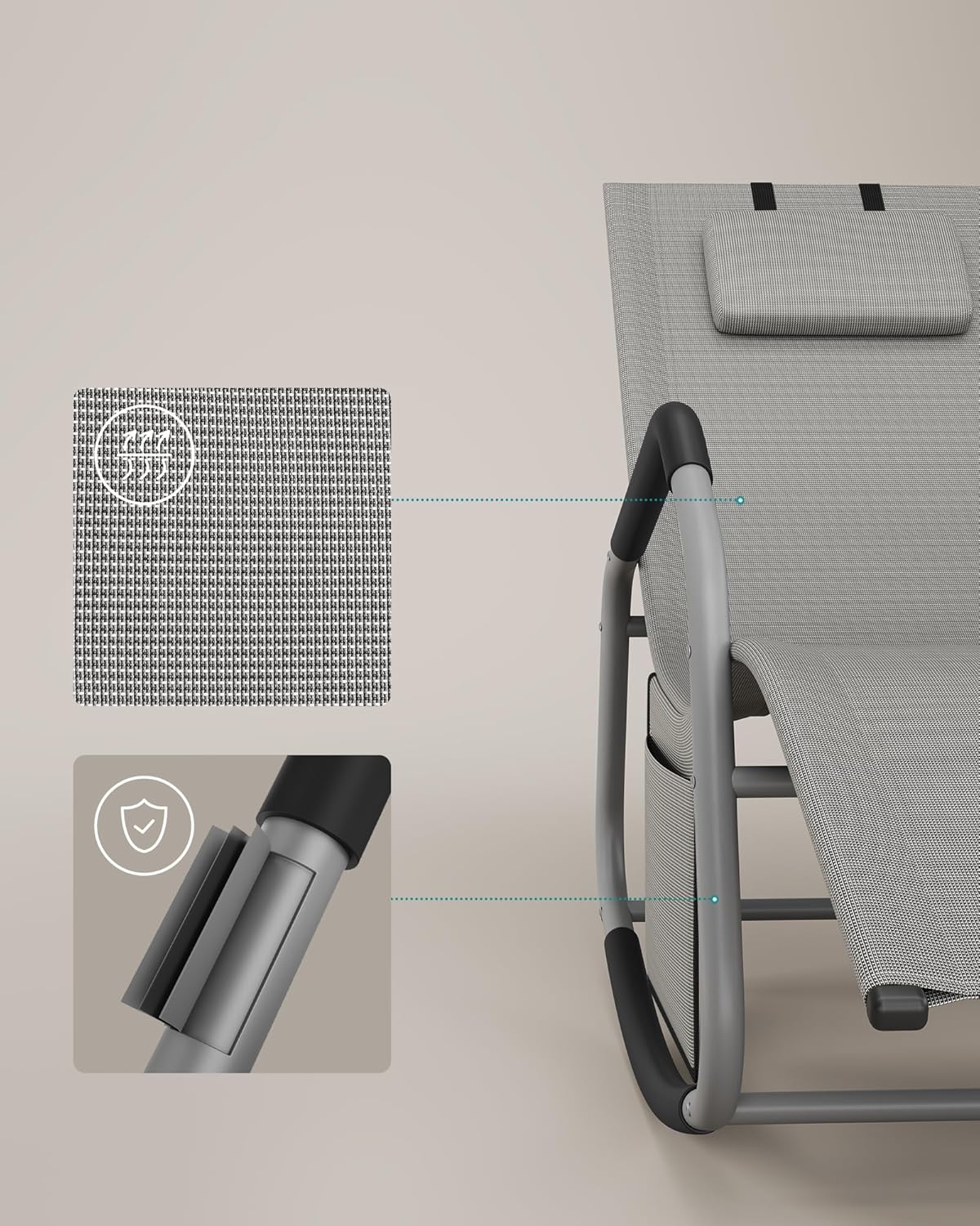 Descriere Sezlong balansoar gradina SONGMICS, gri, tetiera