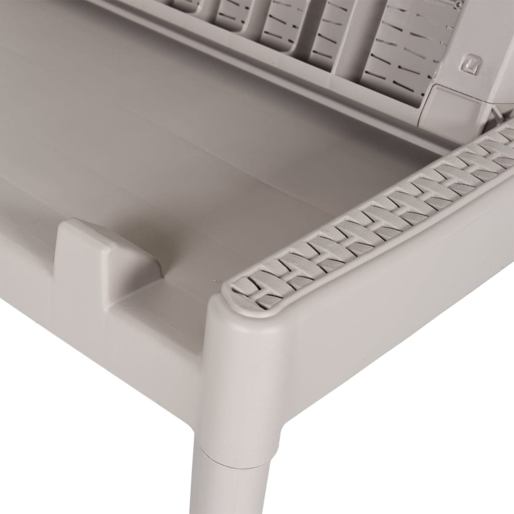 - Finisaj cu aspect de ratan: Șezlongul are un finisaj cu aspect de ratan care adaugă o notă de farmec natural spațiului dvs. de locuit în aer liber.
