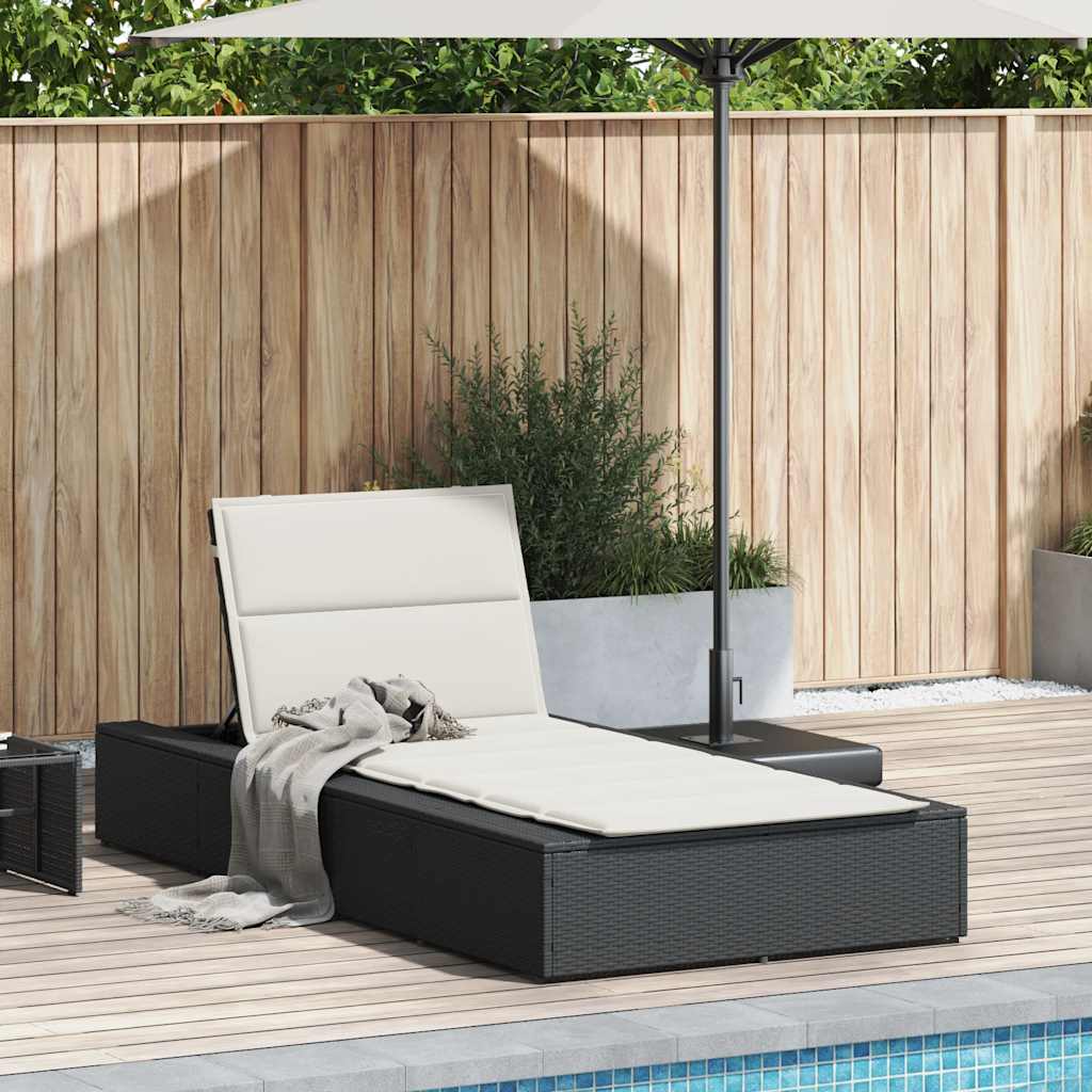 Sezlong cu pernă plutitoare Rattan poli negru GartenMobel Dekor