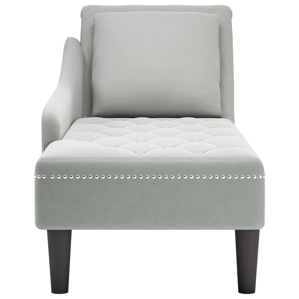 Șezlong cu pernă și cotieră dreaptă, gri deschis, catifea GartenMobel Dekor