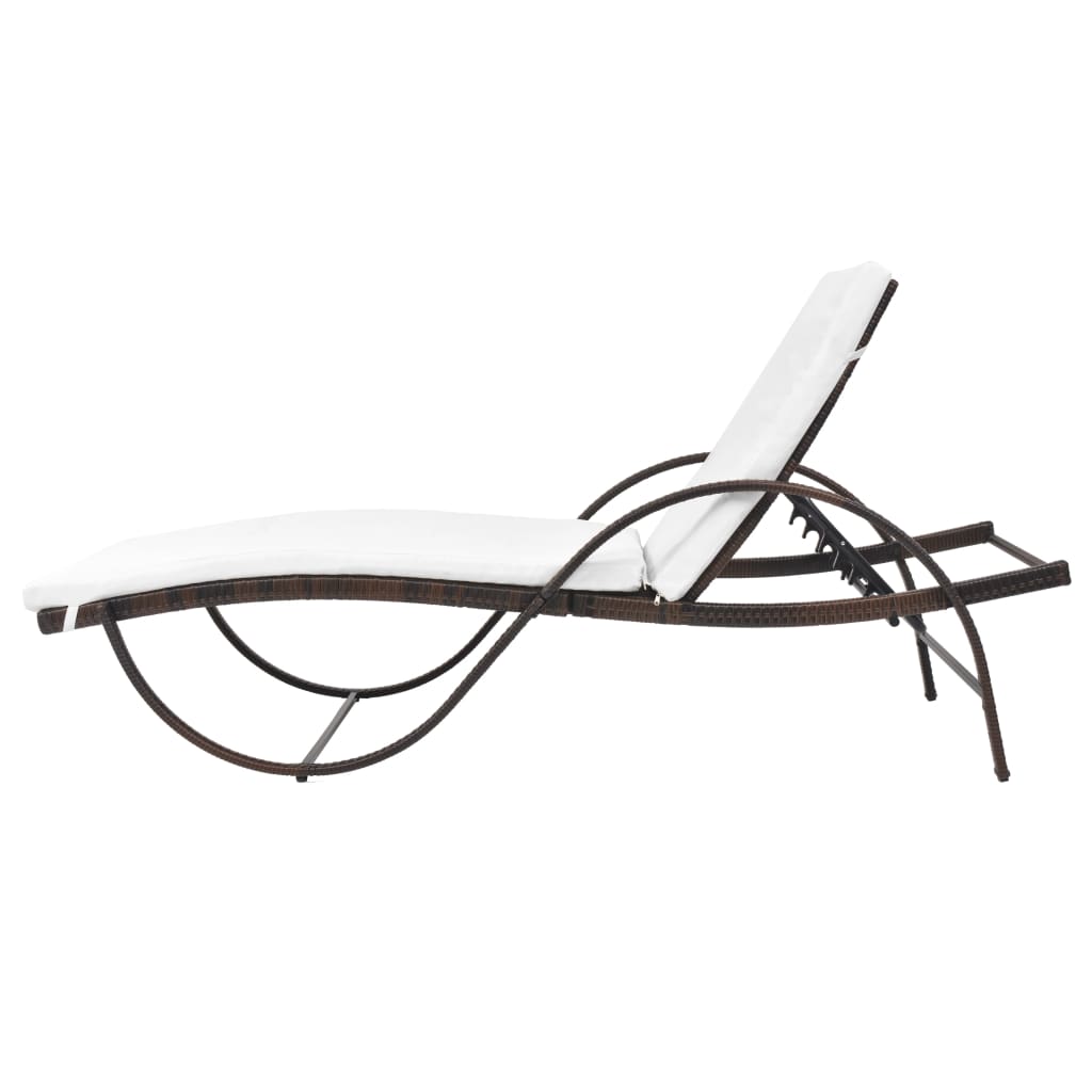 Șezlong de plajă cu pernă și masă, maro, poliratan GartenMobel Dekor