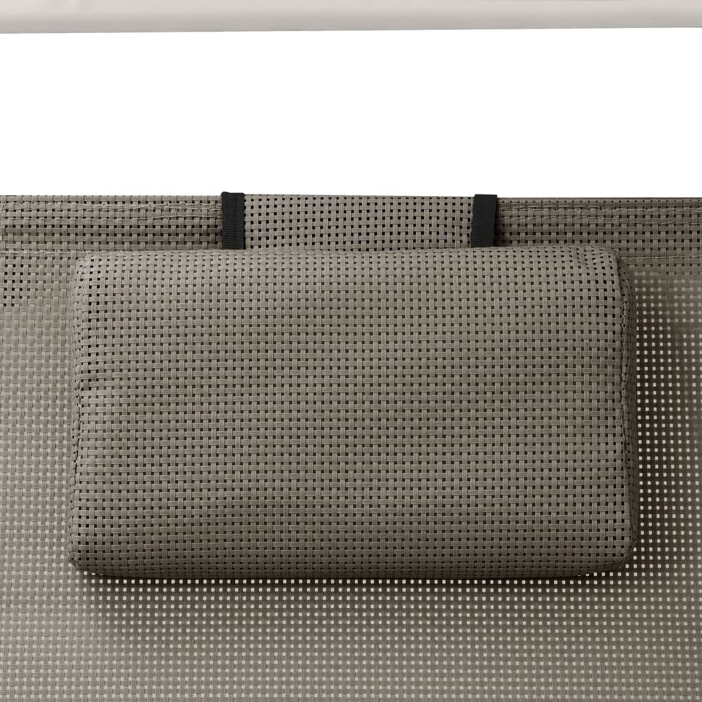 Șezlong de plajă dublu cu baldachin, gri taupe, textilenă GartenMobel Dekor
